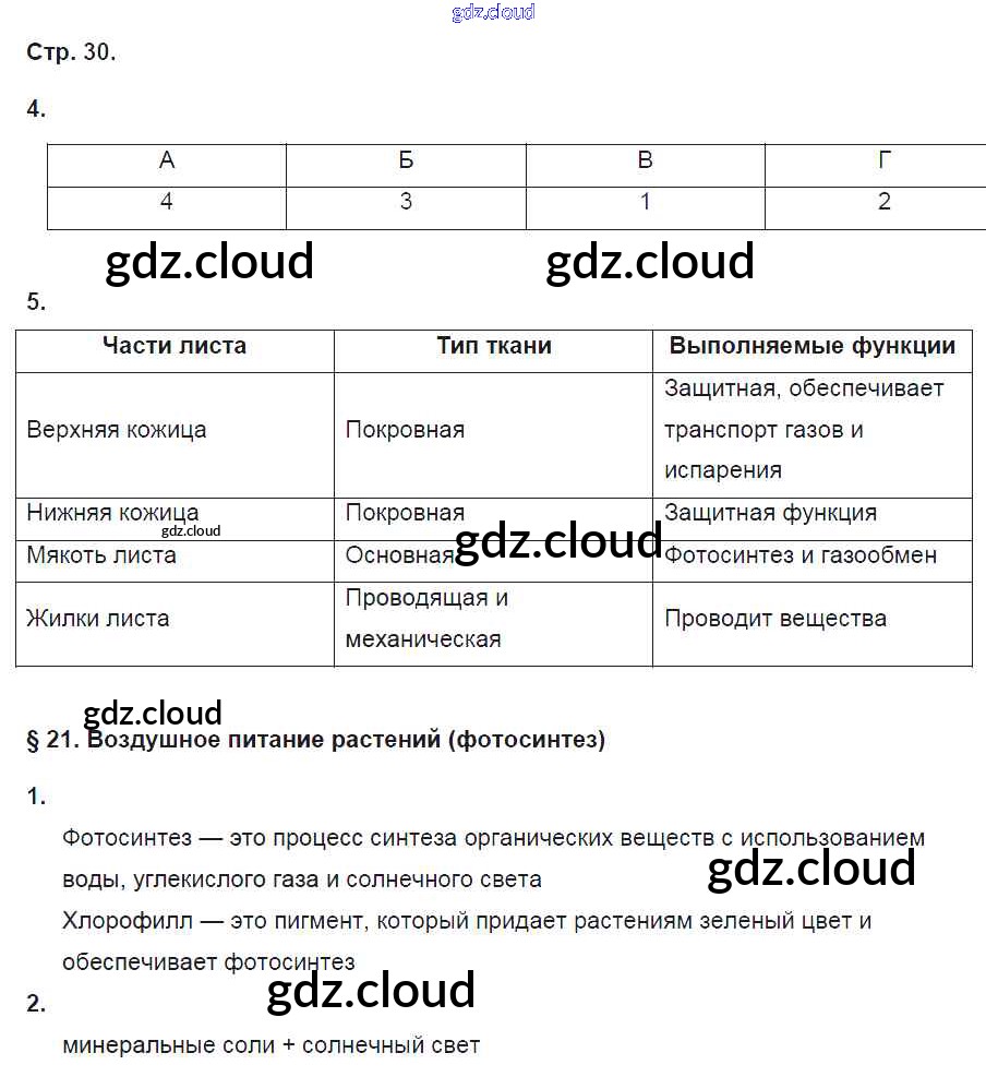 Ответ на задание 30 Рабочая тетрадь Биология за 6 (шестой) класс Исаева, Романова Инновационная школа 2017 ФГОС онлайн и без номера телефона.