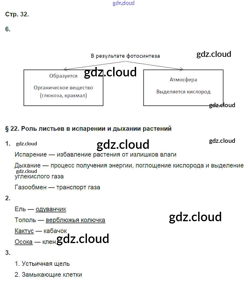 Ответ на задание 32 Рабочая тетрадь Биология за 6 (шестой) класс Исаева, Романова Инновационная школа 2017 ФГОС онлайн и без номера телефона.