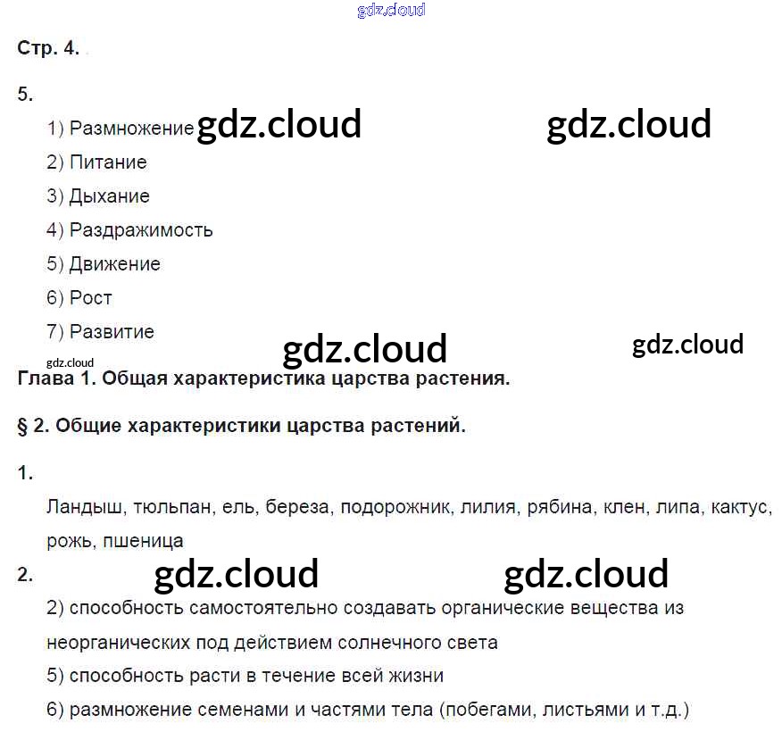 Ответ на задание 4 Рабочая тетрадь Биология за 6 (шестой) класс Исаева, Романова Инновационная школа 2017 ФГОС онлайн и без номера телефона.