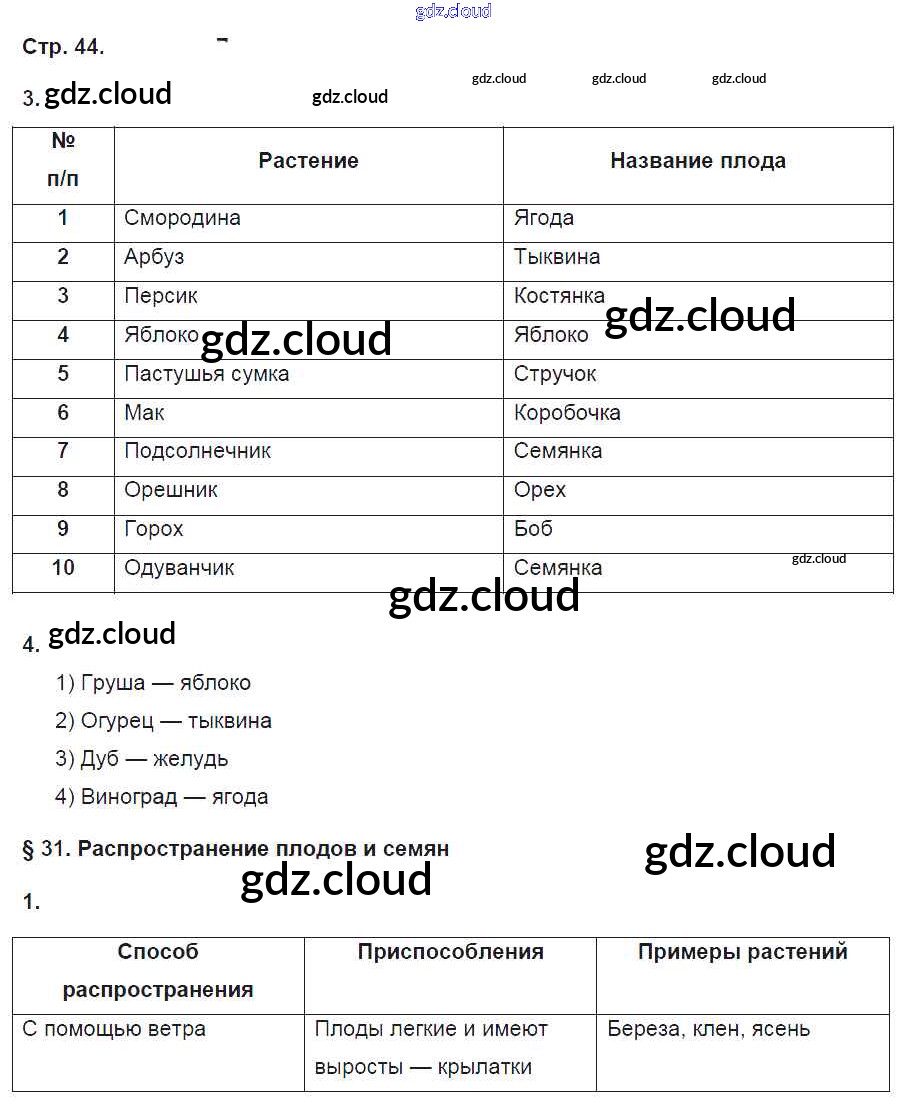 Ответ на задание 44 Рабочая тетрадь Биология за 6 (шестой) класс Исаева, Романова Инновационная школа 2017 ФГОС онлайн и без номера телефона.