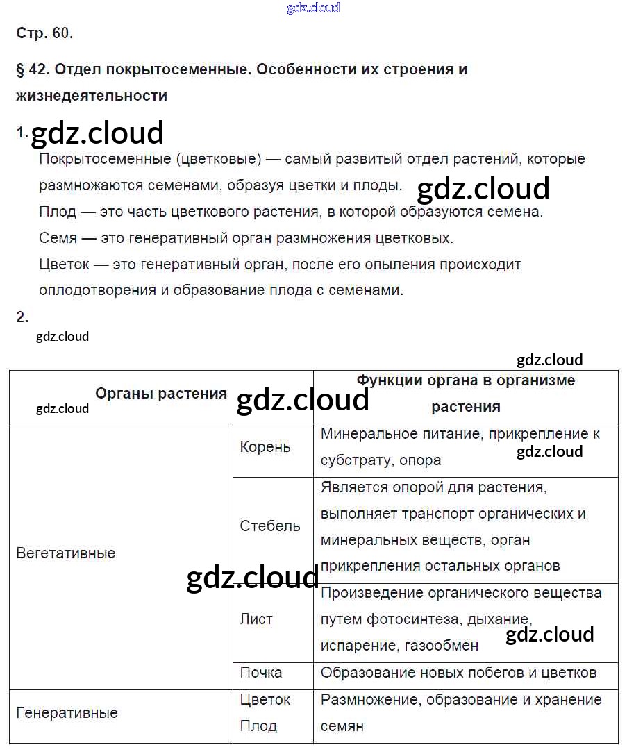 Ответ на задание 60 Рабочая тетрадь Биология за 6 (шестой) класс Исаева, Романова Инновационная школа 2017 ФГОС онлайн и без номера телефона.
