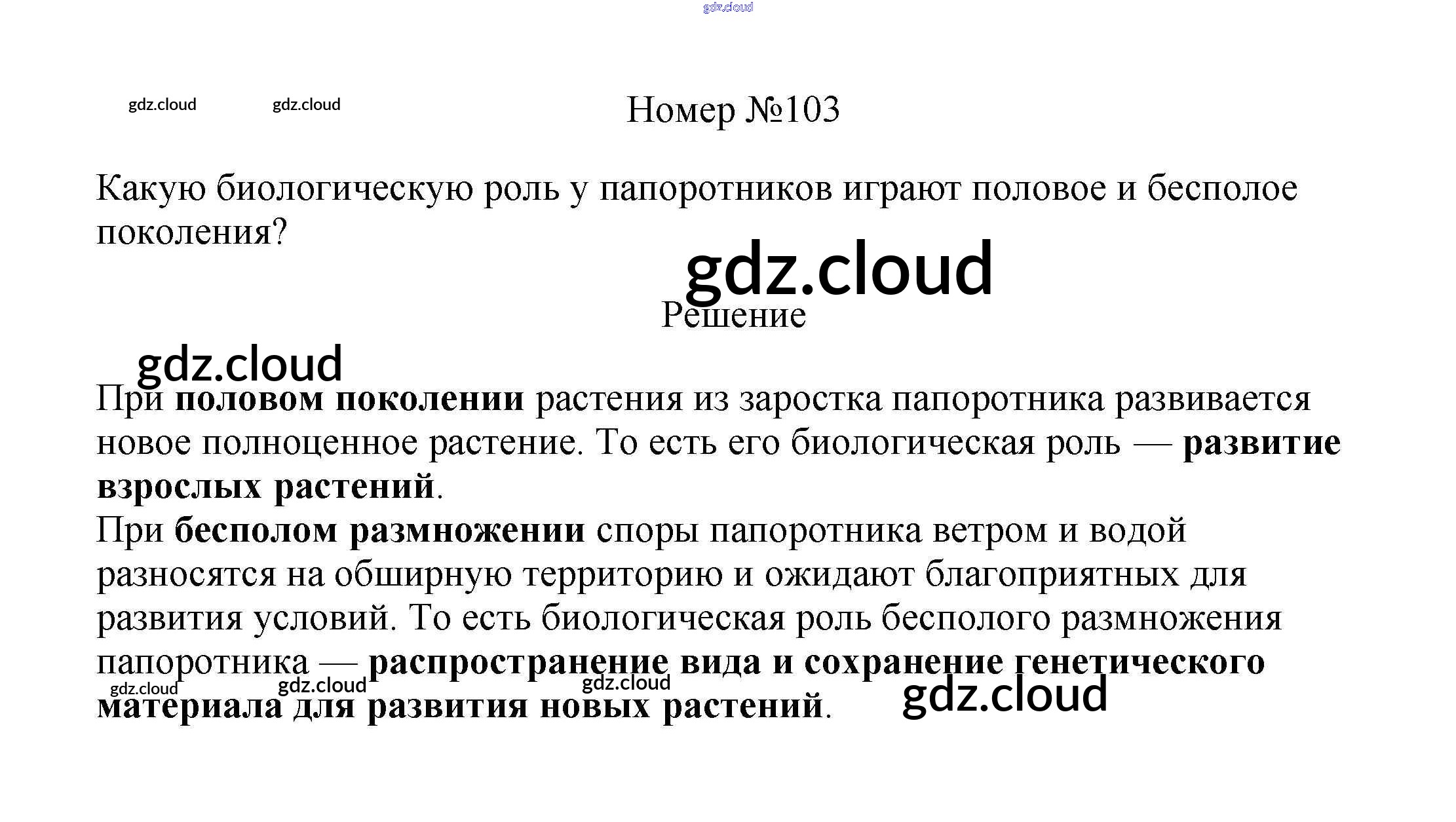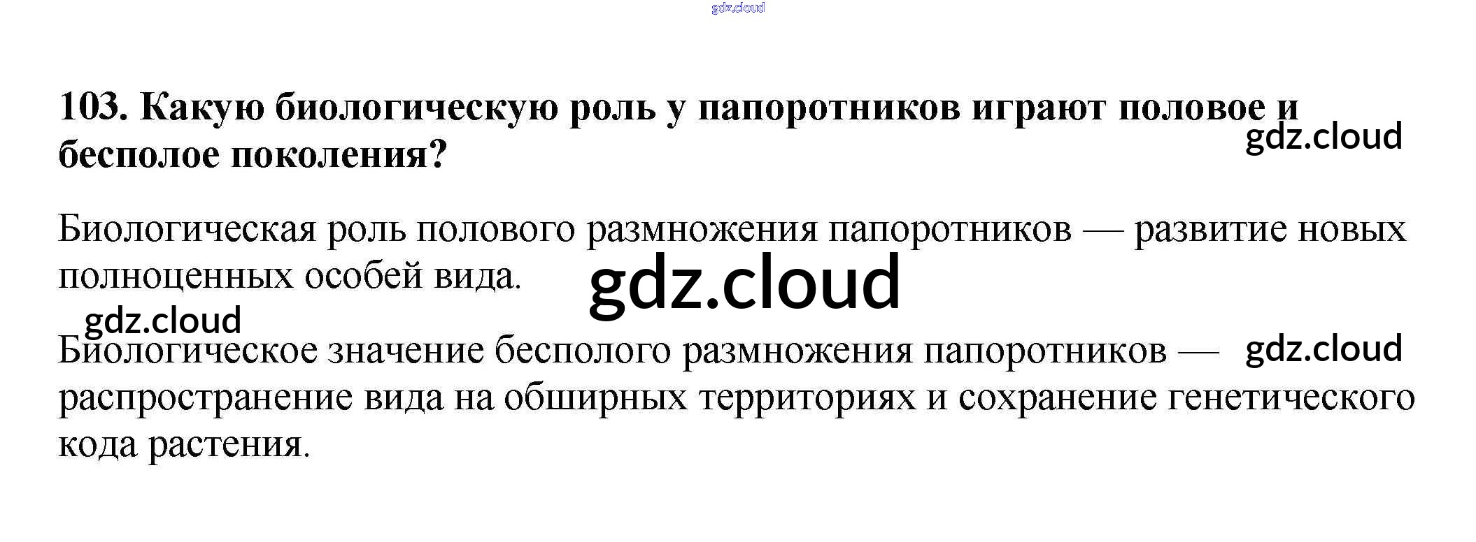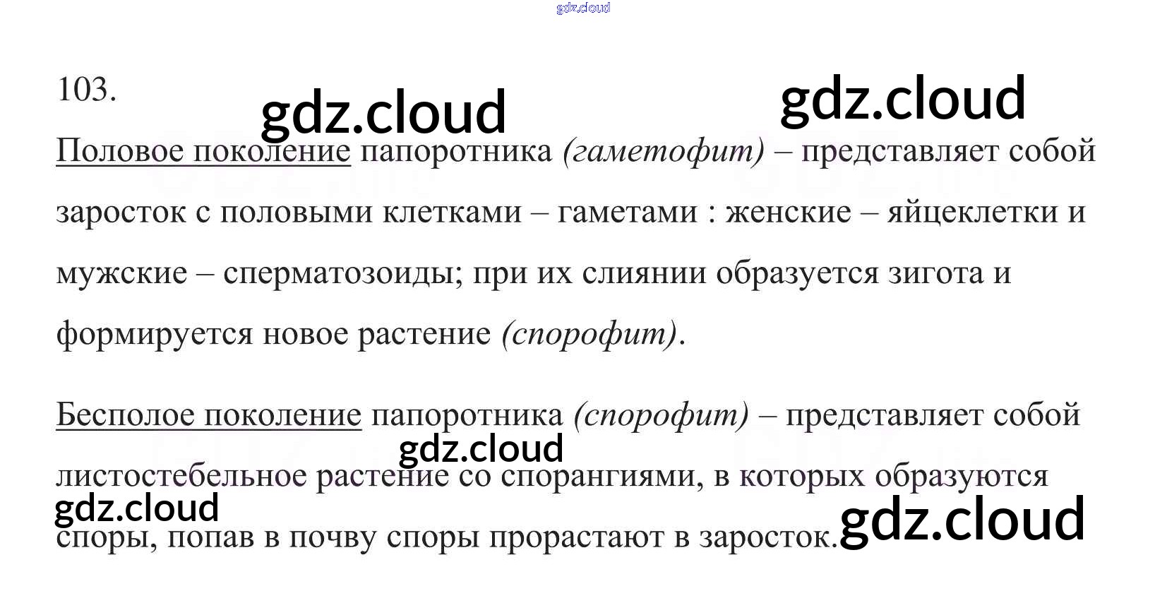 Ответ на задание 103 Рабочая тетрадь Биология за 6 (шестой) класс Пасечник УМК 2017