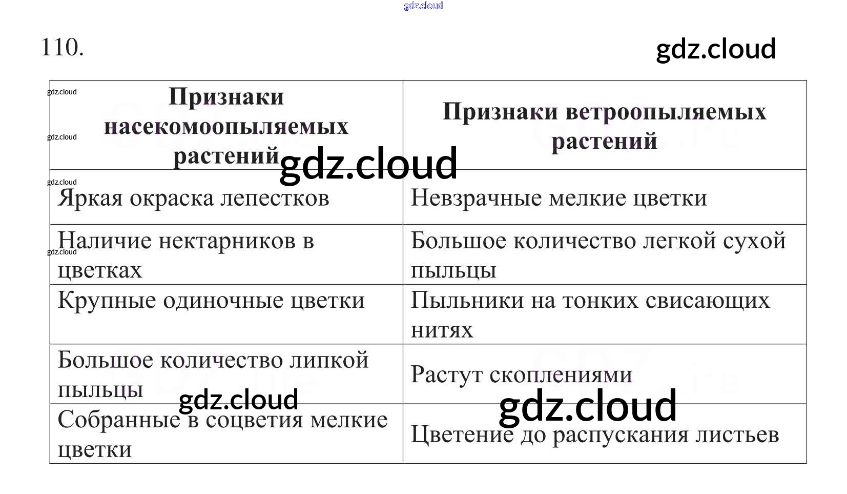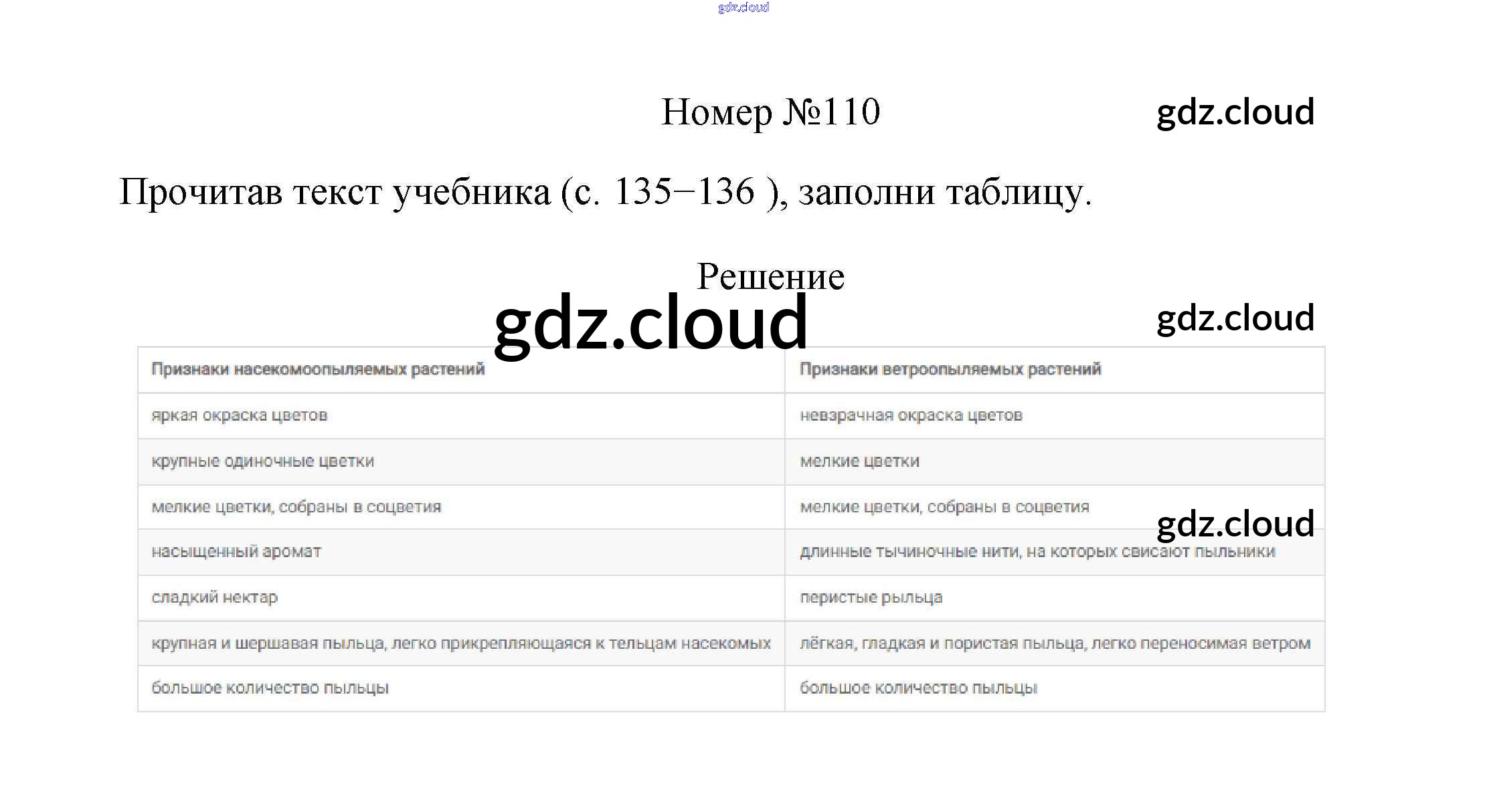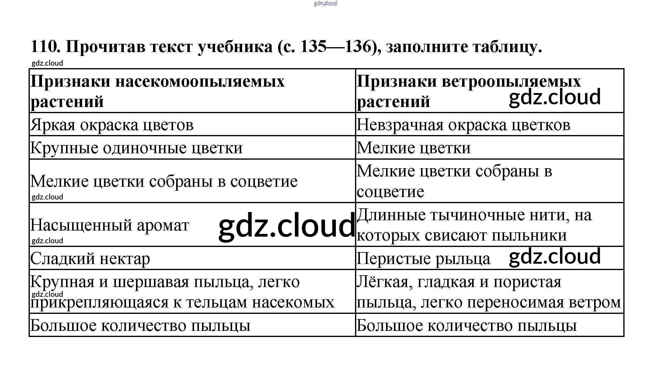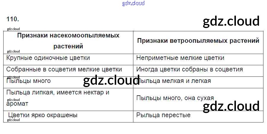 Ответ на задание 110 Рабочая тетрадь Биология за 6 (шестой) класс Пасечник УМК 2017