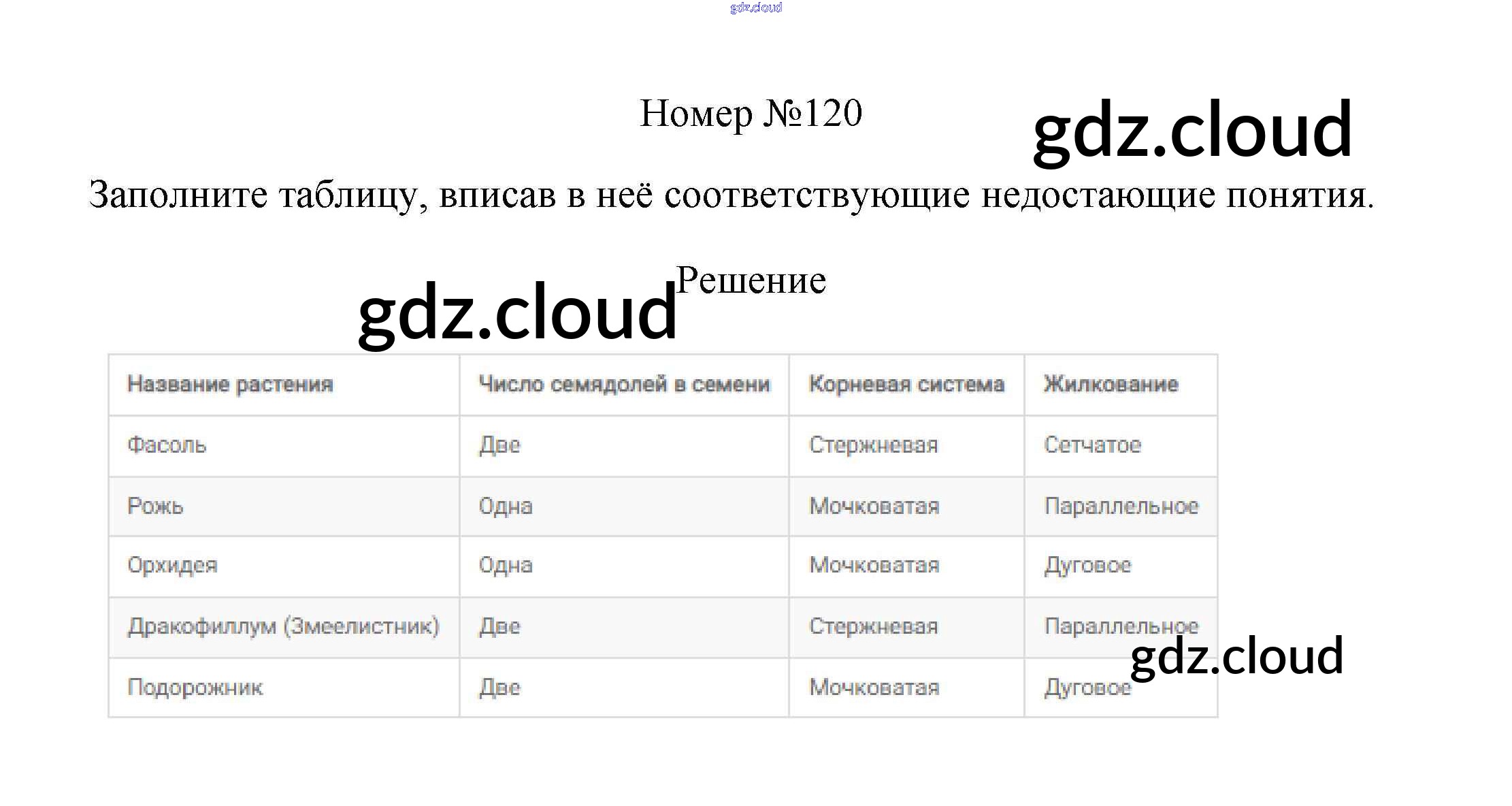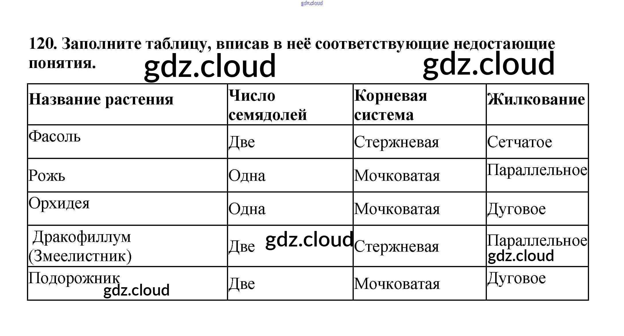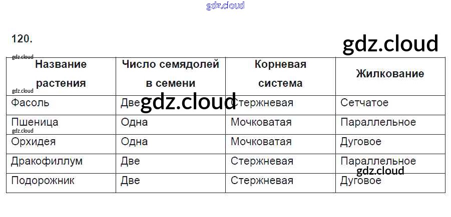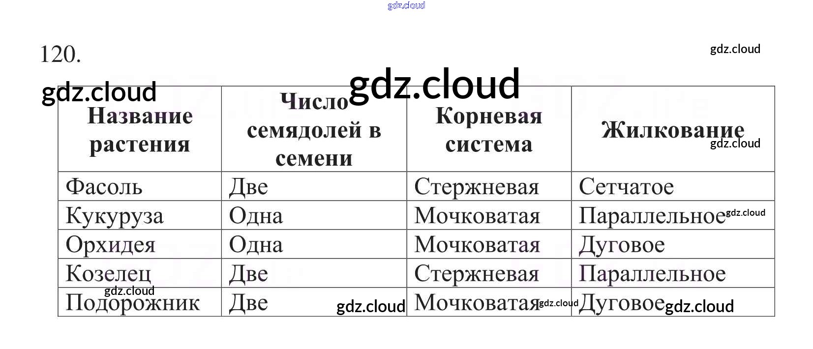 Ответ на задание 120 Рабочая тетрадь Биология за 6 (шестой) класс Пасечник УМК 2017