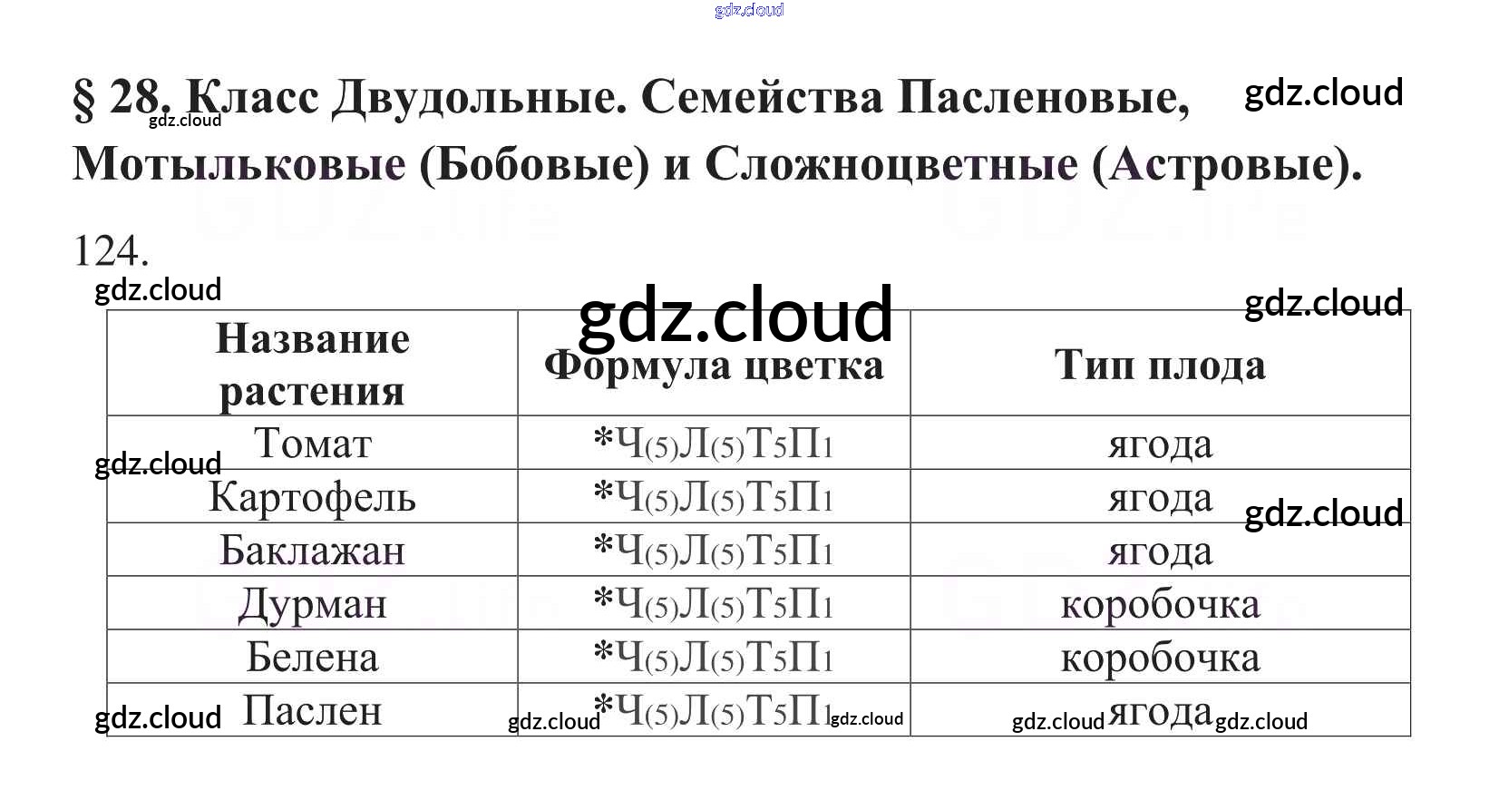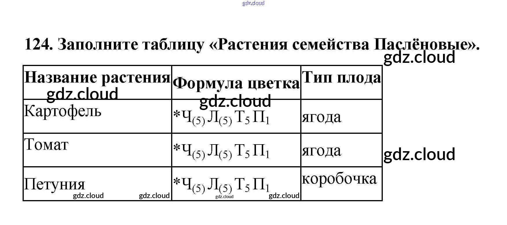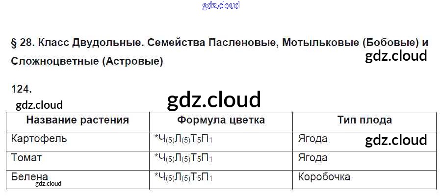 Ответ на задание 124 Рабочая тетрадь Биология за 6 (шестой) класс Пасечник УМК 2017