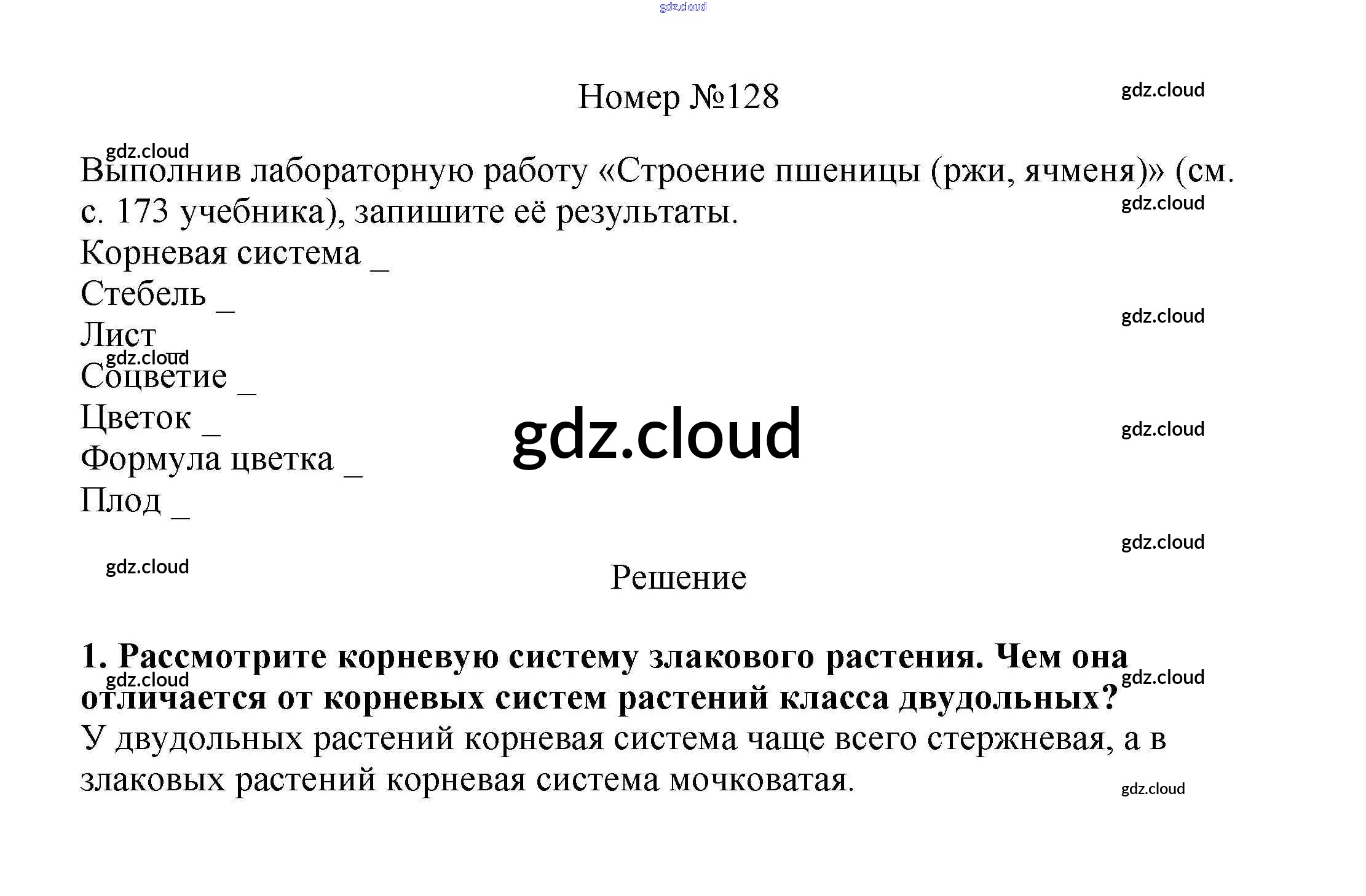Ответ на задание 128 Рабочая тетрадь Биология за 6 (шестой) класс Пасечник УМК 2017