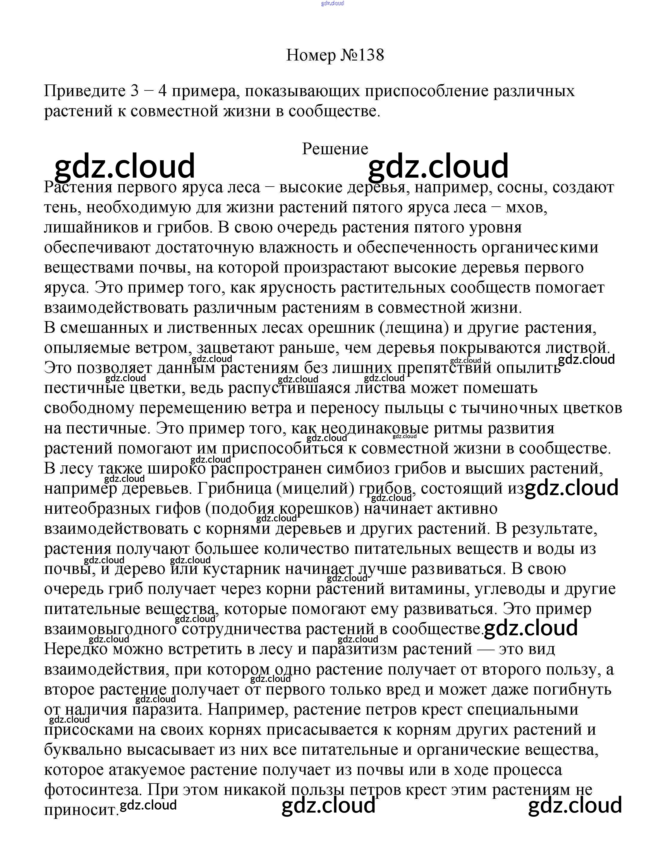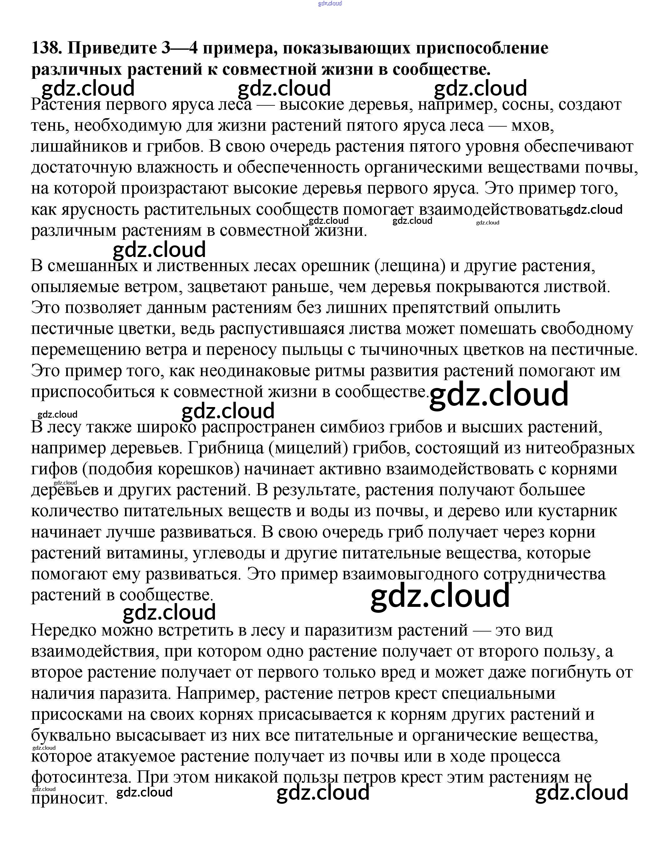 Ответ на задание 138 Рабочая тетрадь Биология за 6 (шестой) класс Пасечник УМК 2017