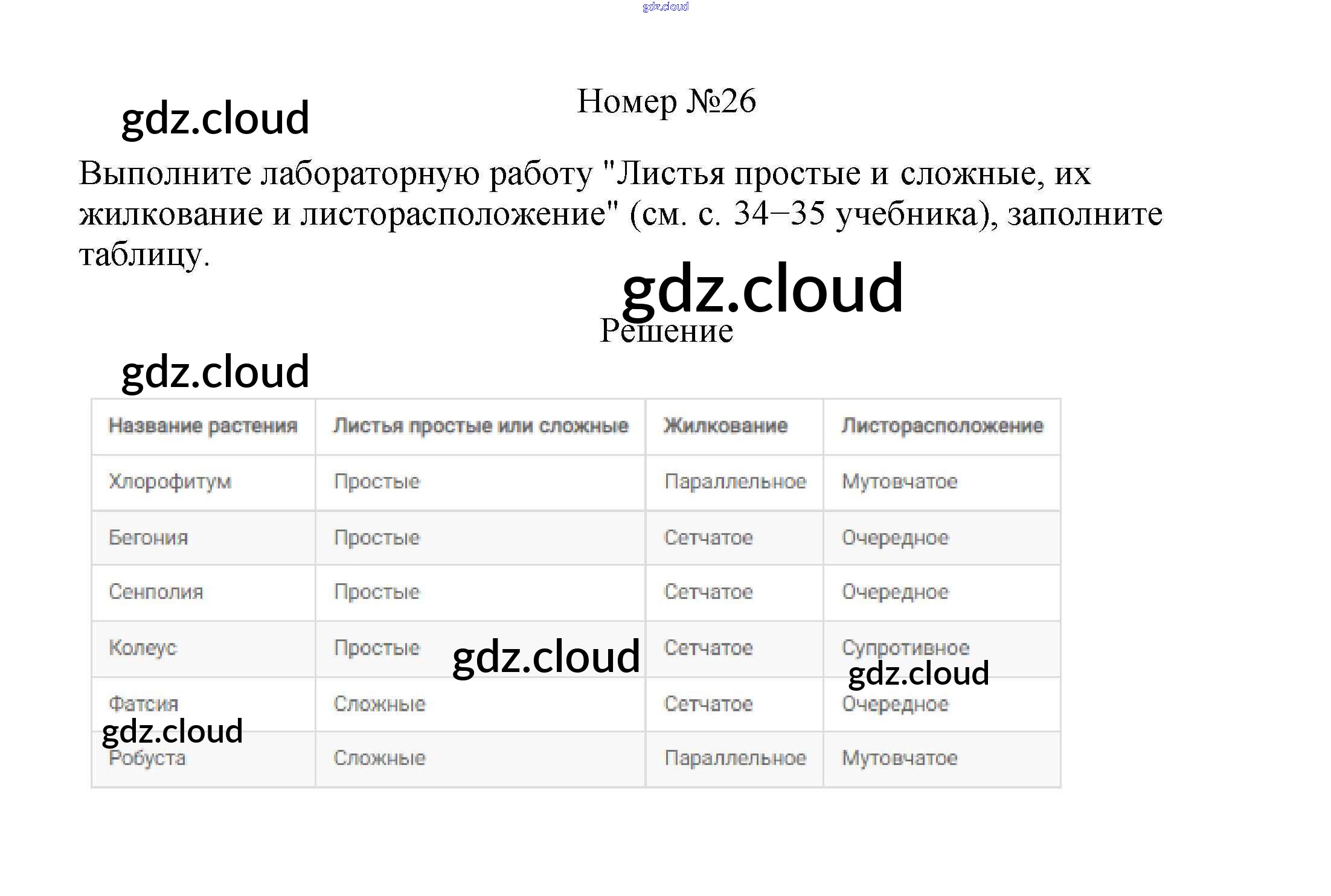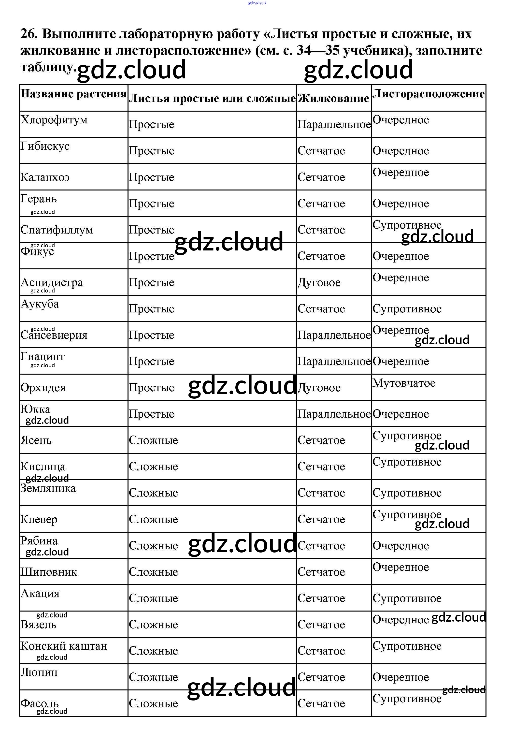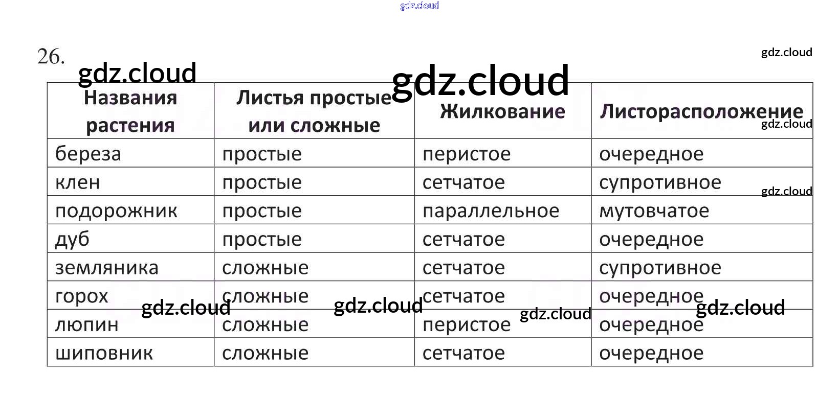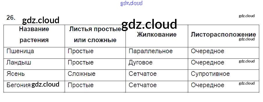 Ответ на задание 26 Рабочая тетрадь Биология за 6 (шестой) класс Пасечник УМК 2017
