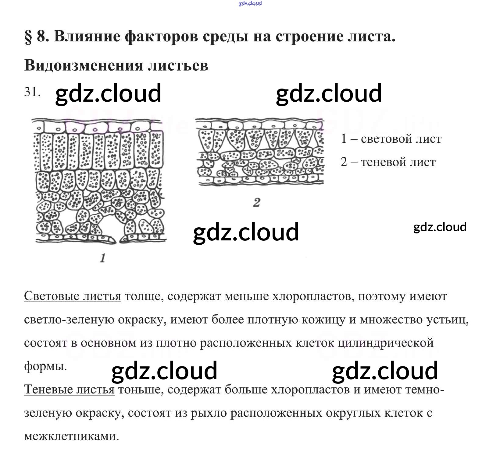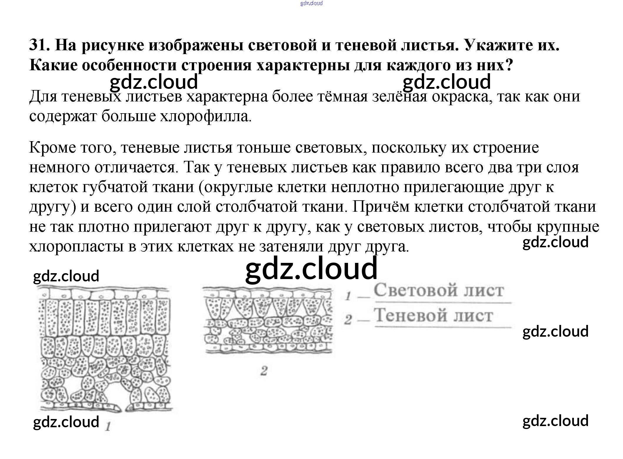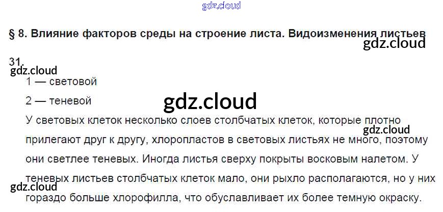 Ответ на задание 31 Рабочая тетрадь Биология за 6 (шестой) класс Пасечник УМК 2017