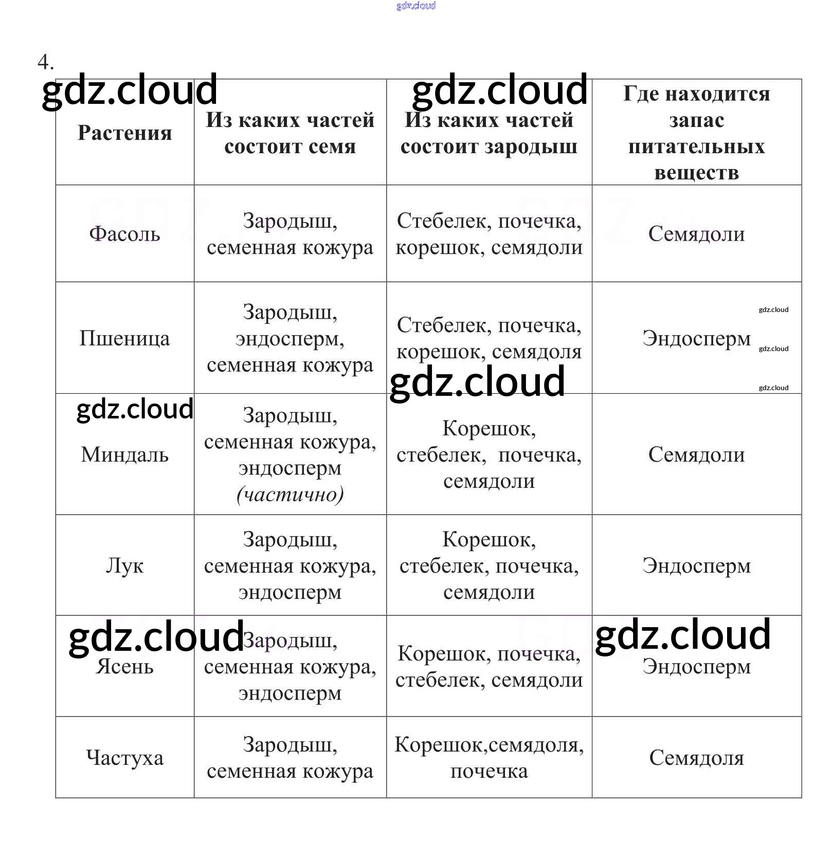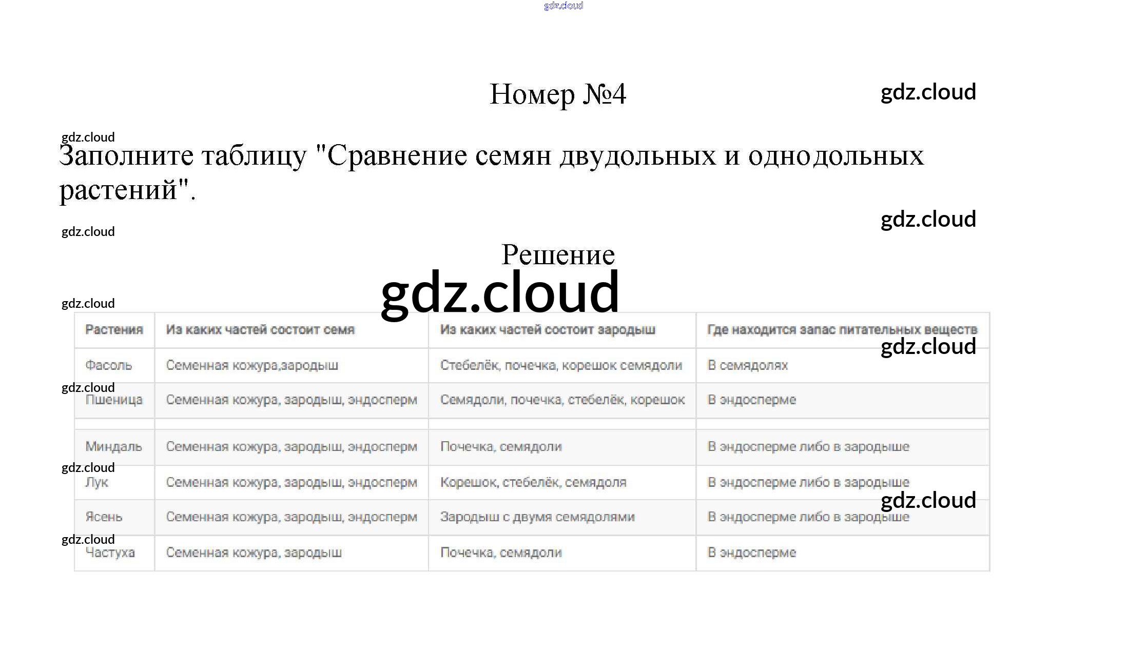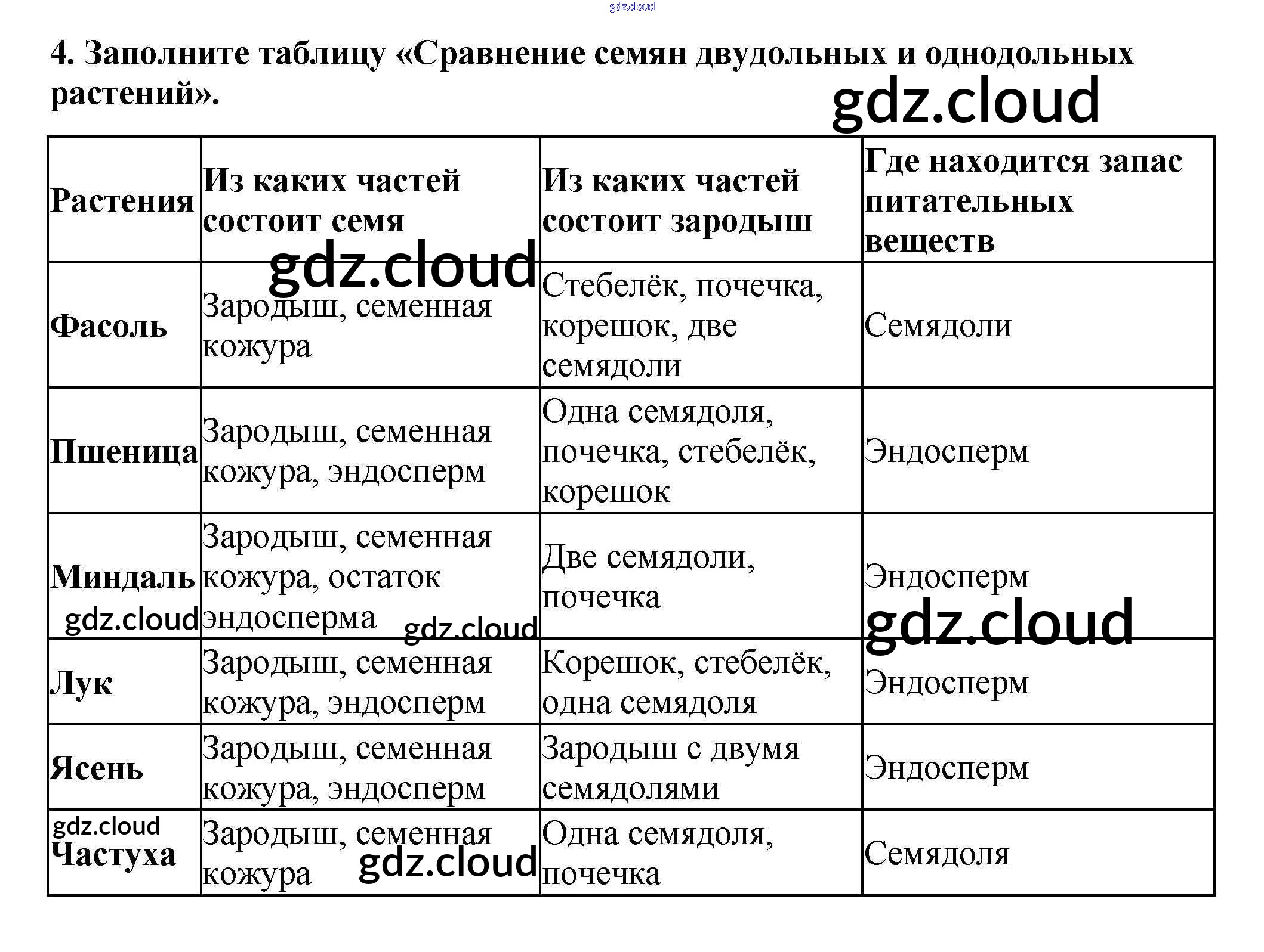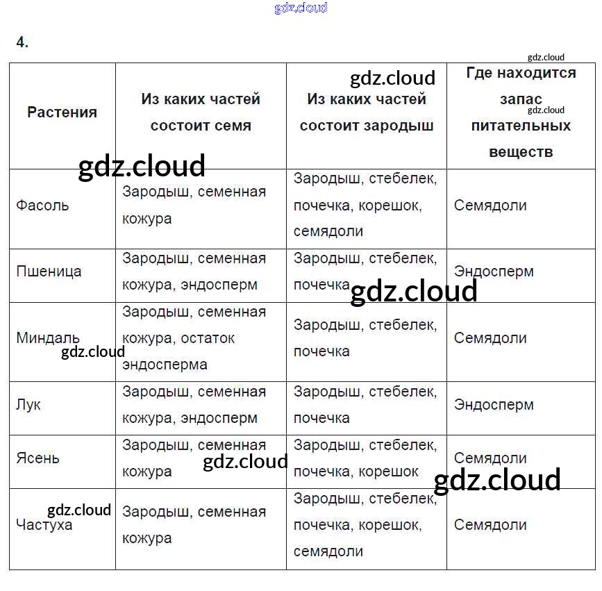 Ответ на задание 4 Рабочая тетрадь Биология за 6 (шестой) класс Пасечник УМК 2017