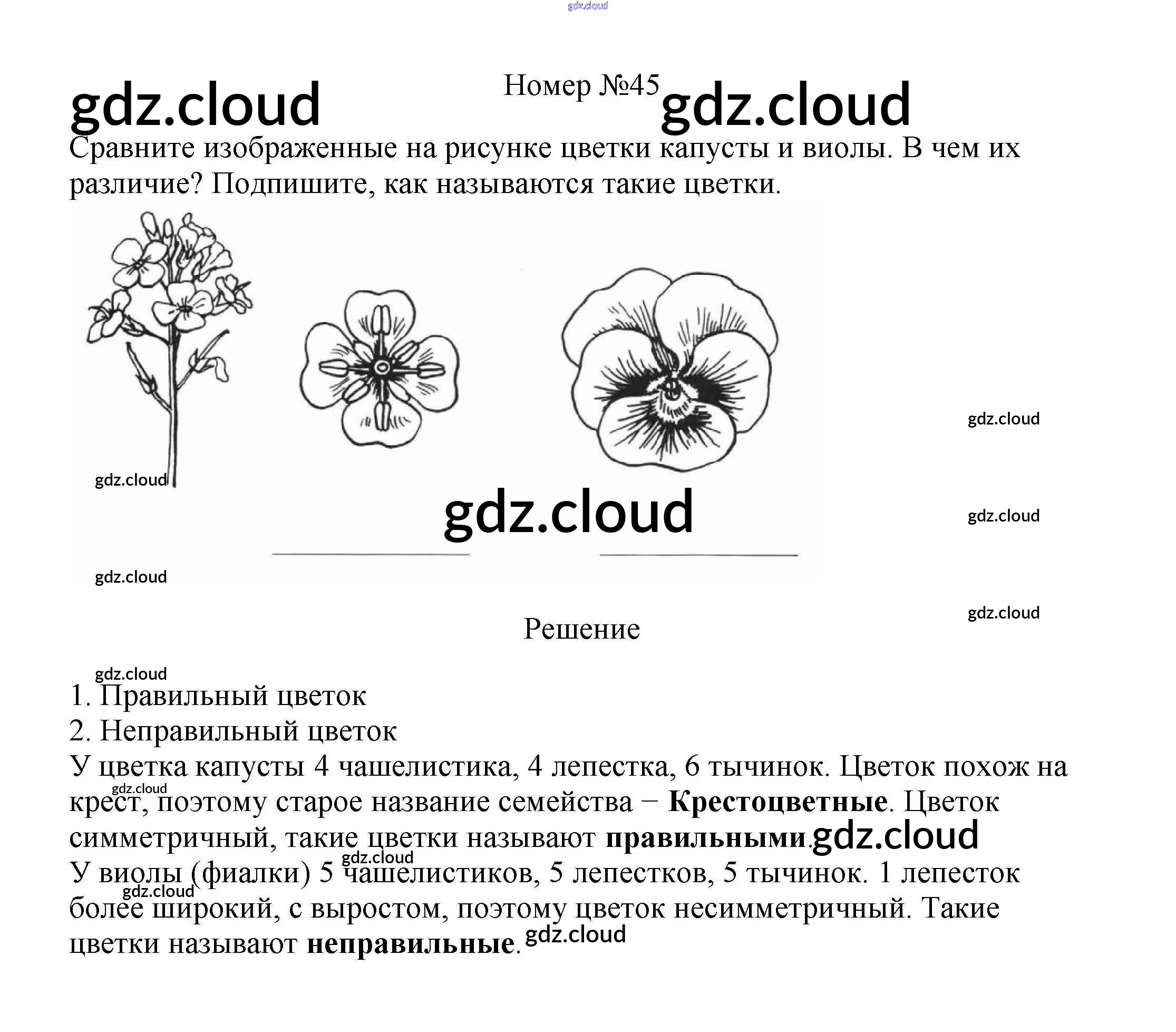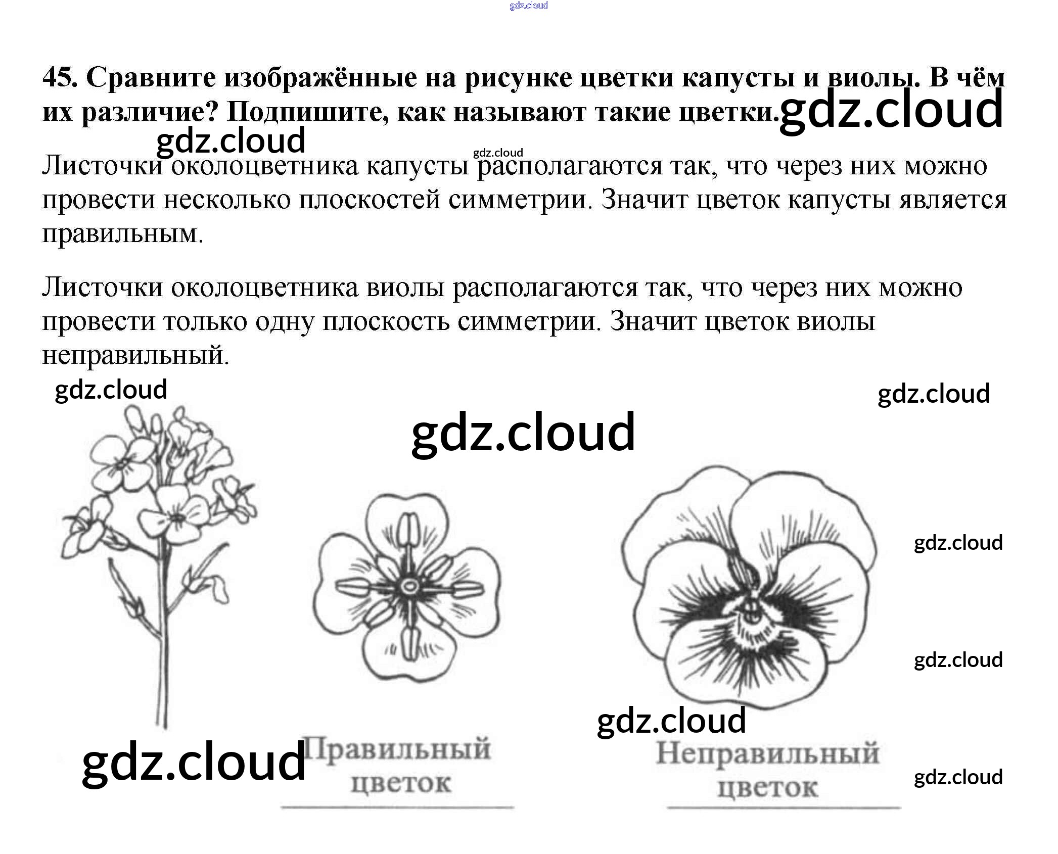 Ответ на задание 45 Рабочая тетрадь Биология за 6 (шестой) класс Пасечник УМК 2017
