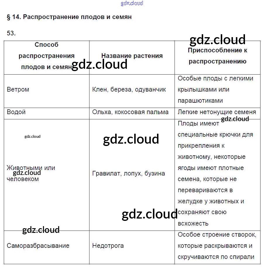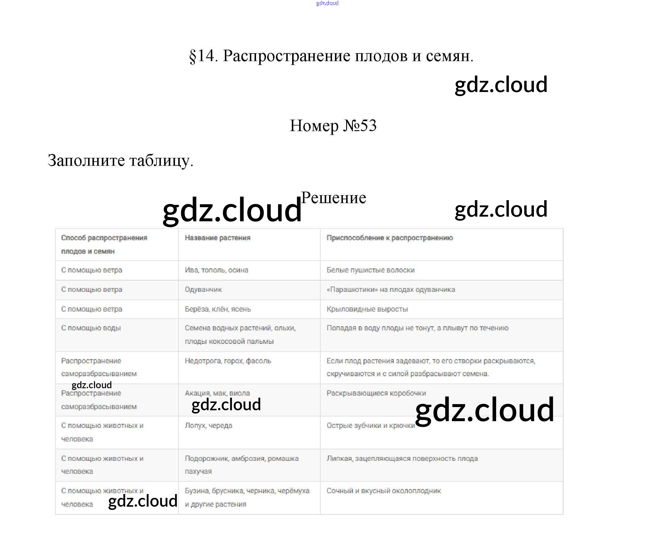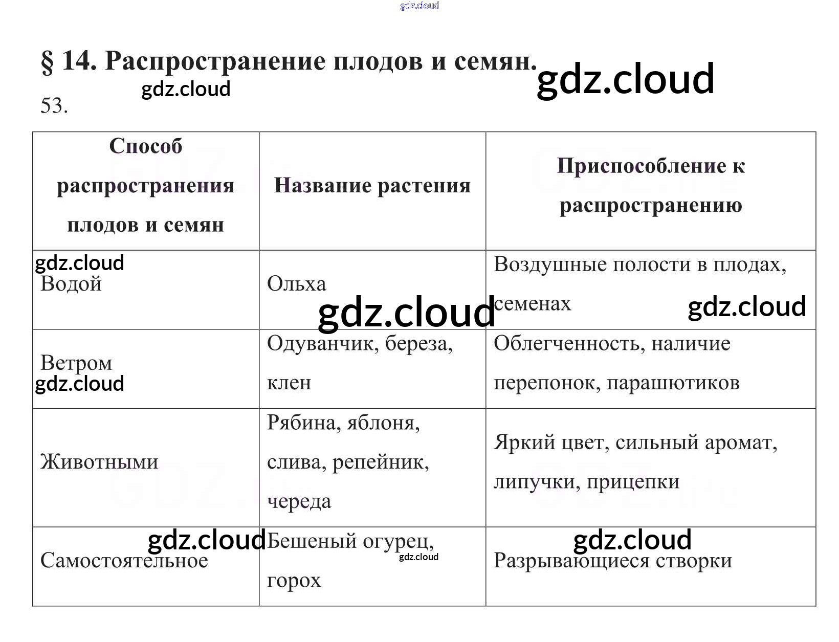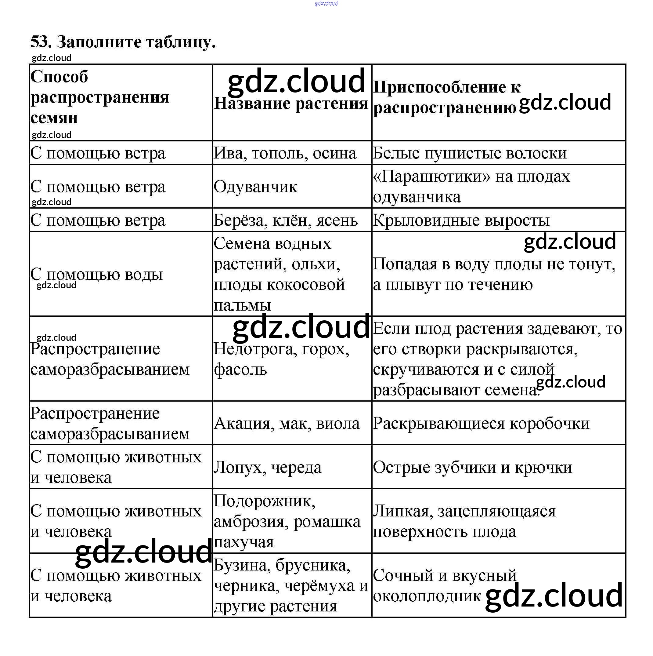Ответ на задание 53 Рабочая тетрадь Биология за 6 (шестой) класс Пасечник УМК 2017