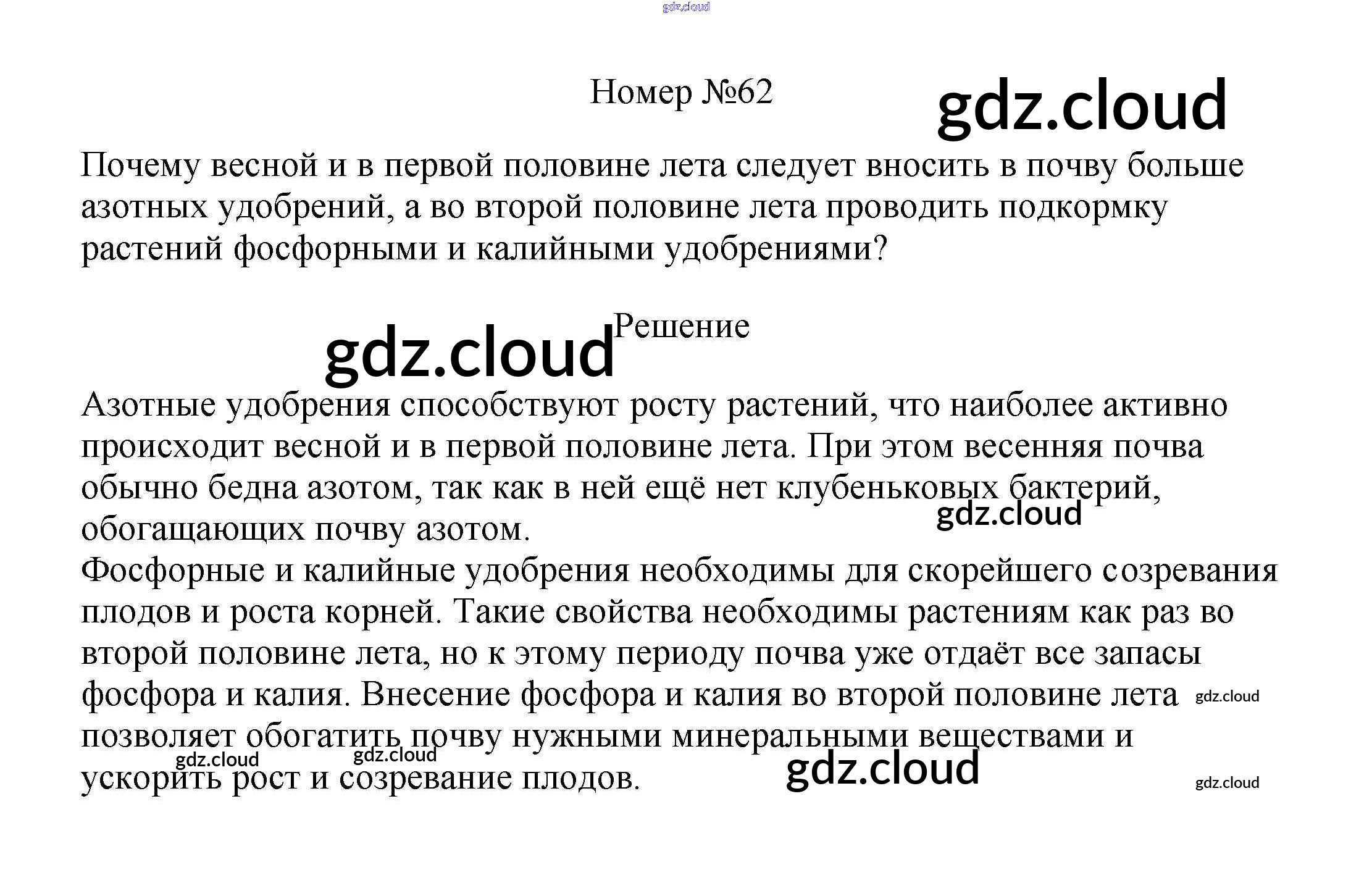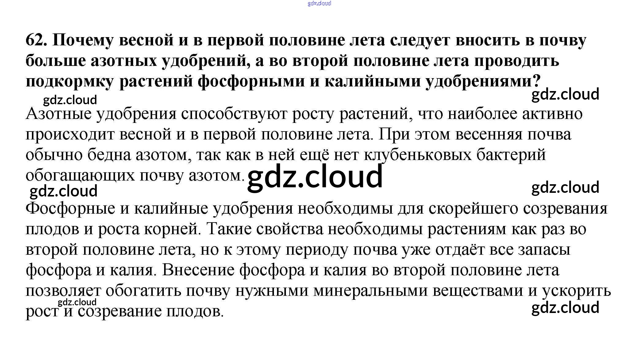 Ответ на задание 62 Рабочая тетрадь Биология за 6 (шестой) класс Пасечник УМК 2017