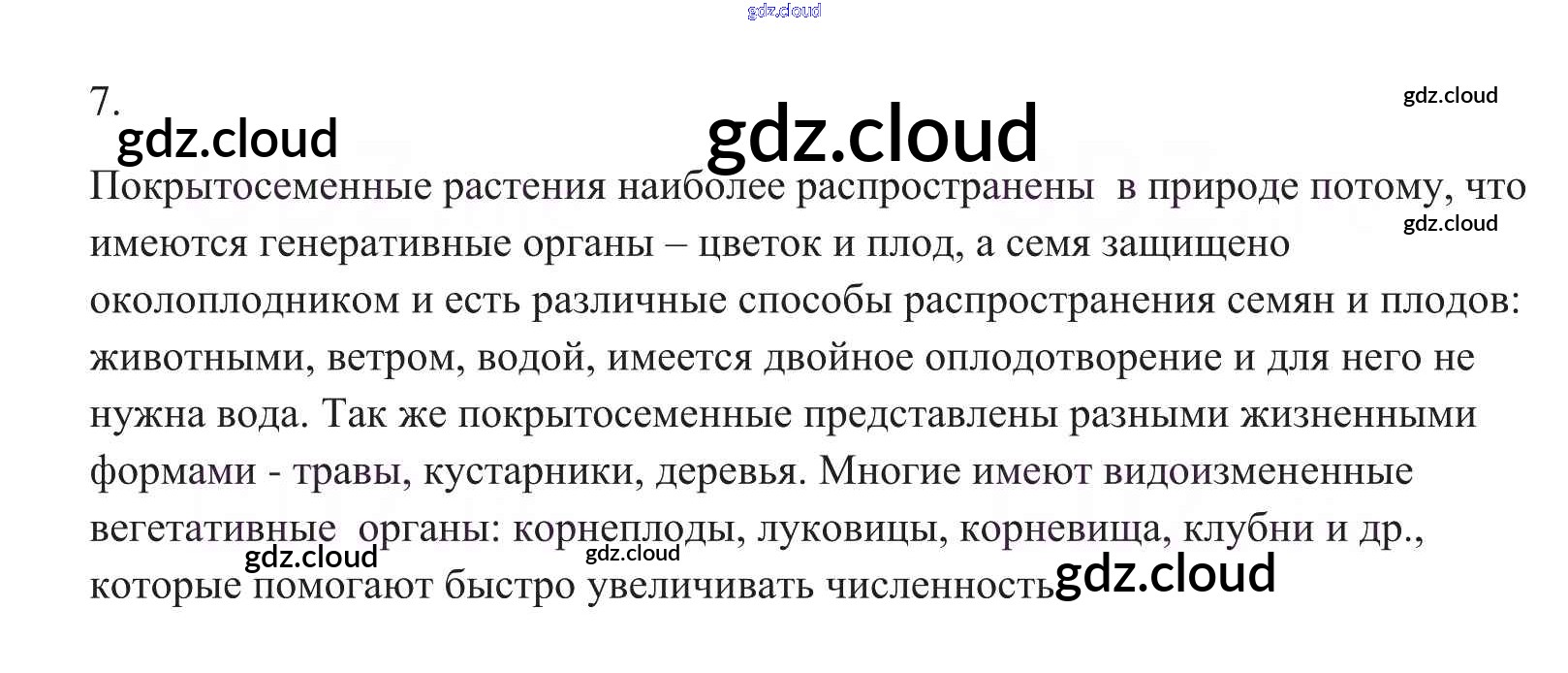 Ответ на задание 7 Рабочая тетрадь Биология за 6 (шестой) класс Пасечник УМК 2017