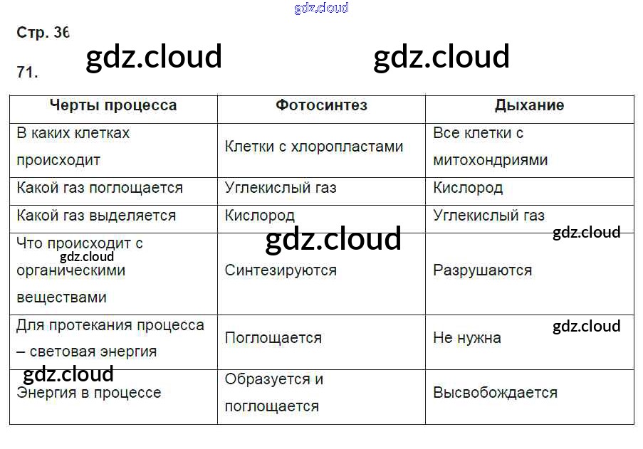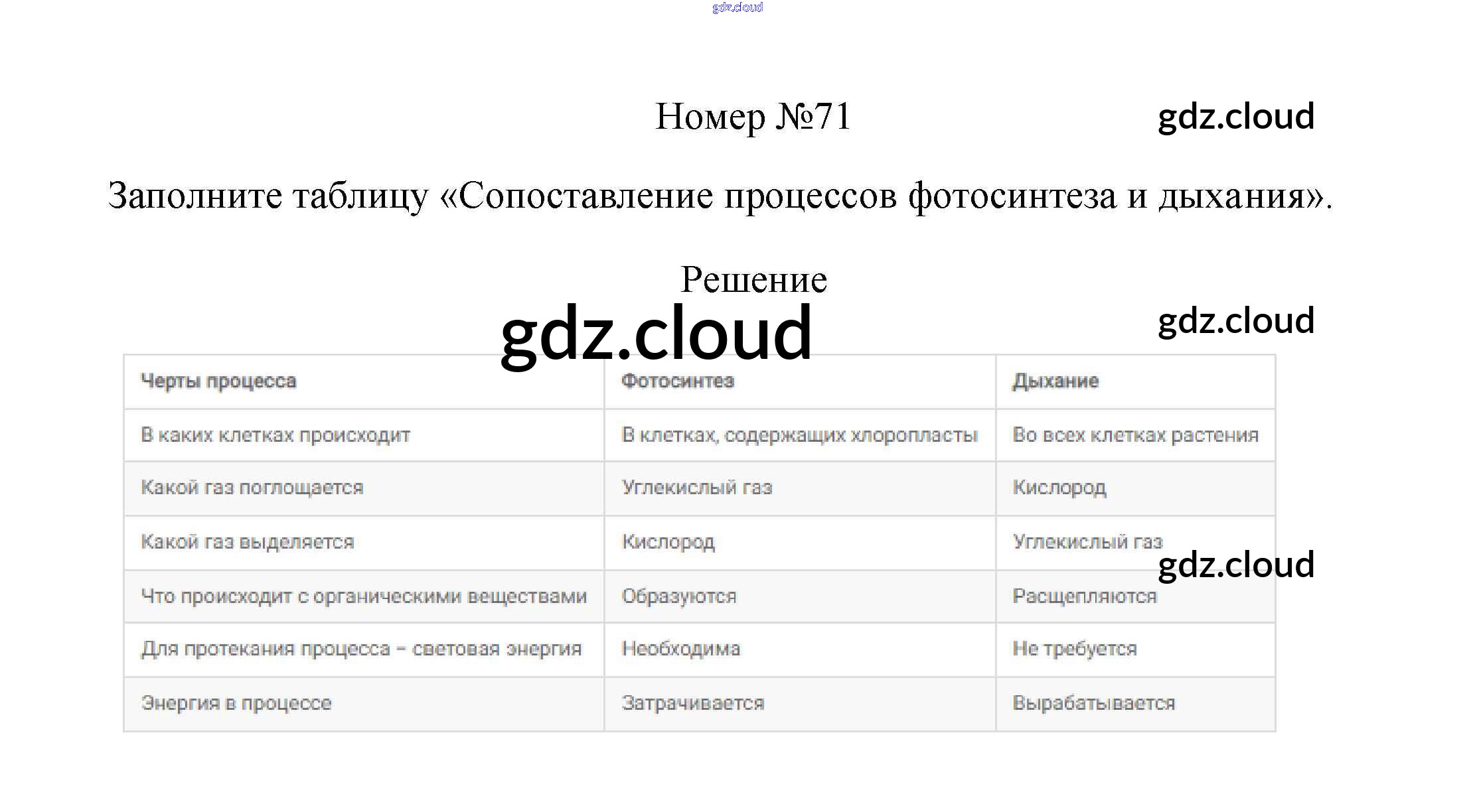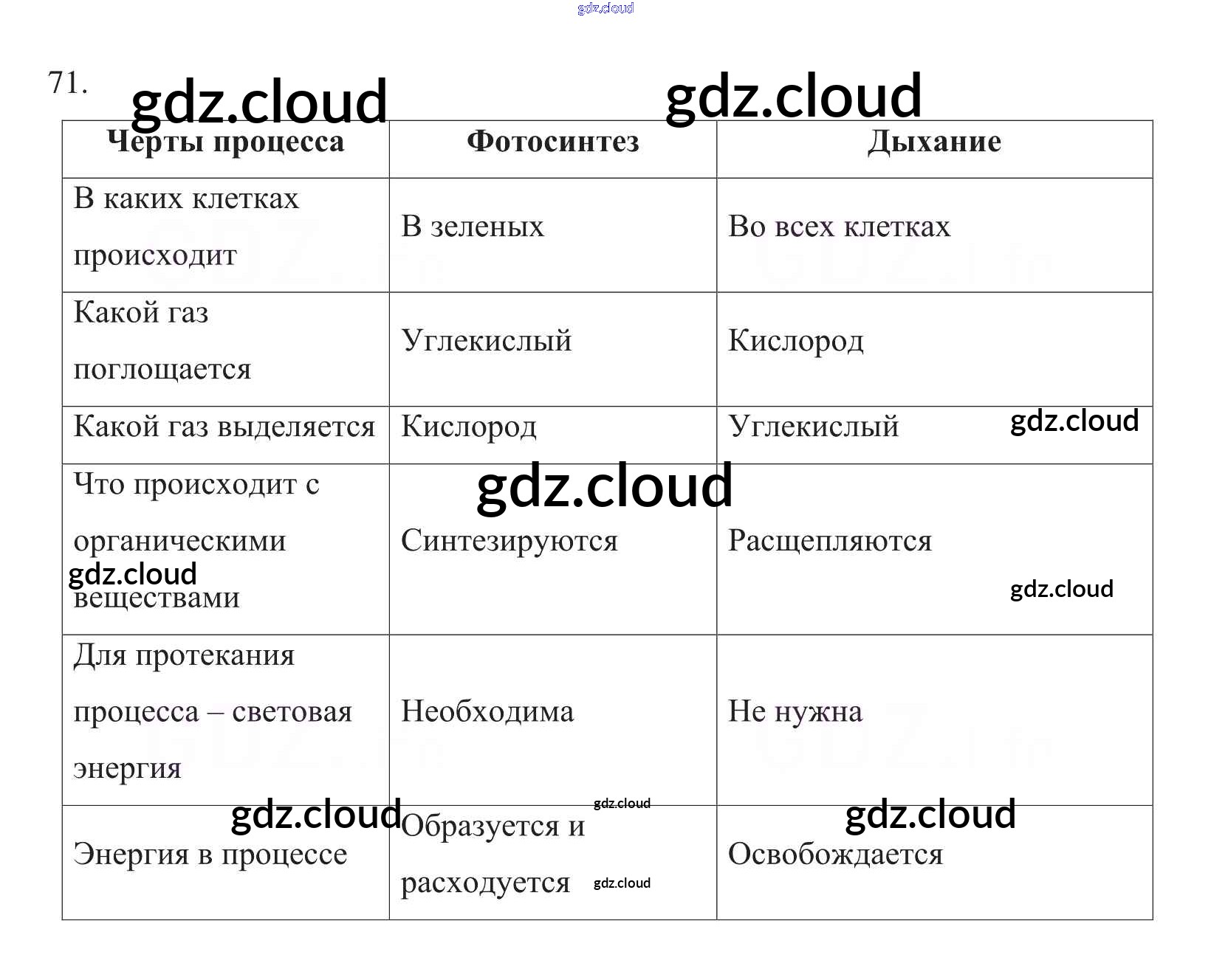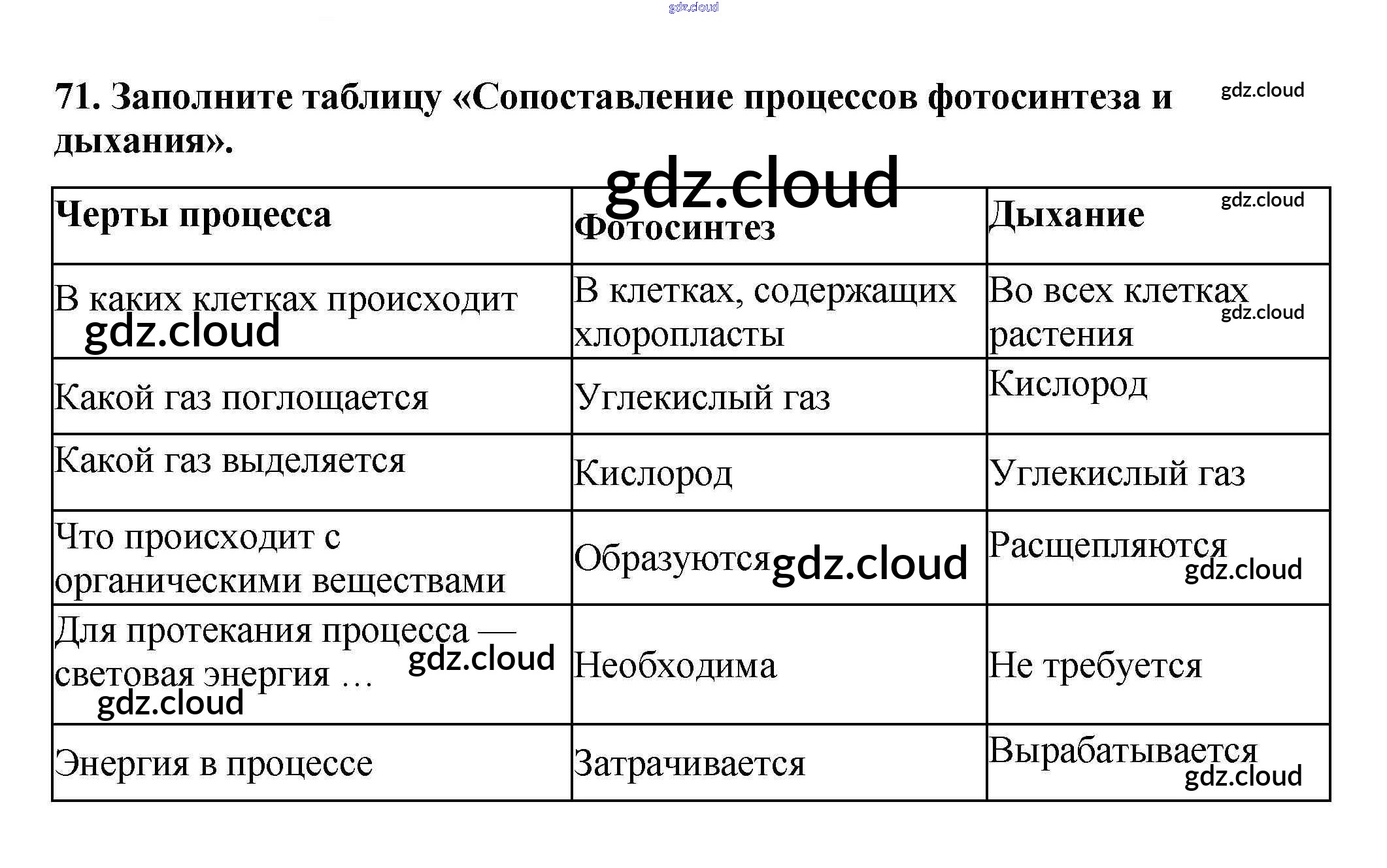 Ответ на задание 71 Рабочая тетрадь Биология за 6 (шестой) класс Пасечник УМК 2017