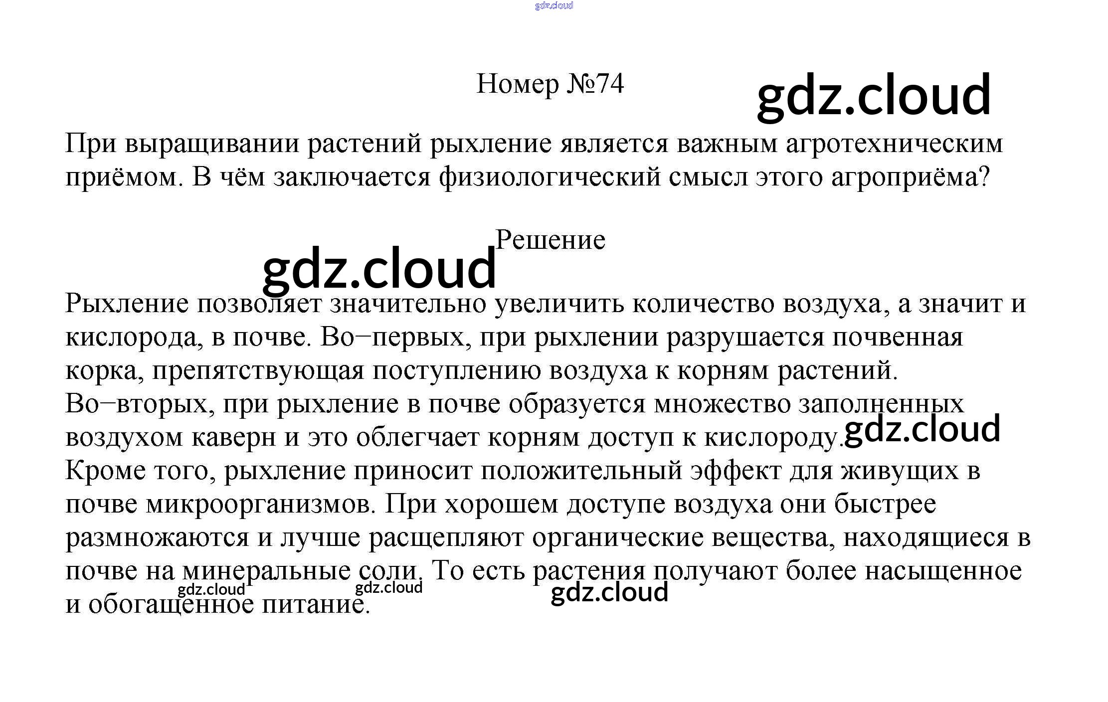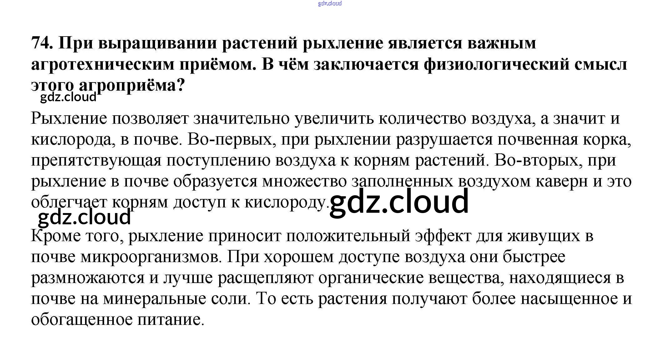 Ответ на задание 74 Рабочая тетрадь Биология за 6 (шестой) класс Пасечник УМК 2017
