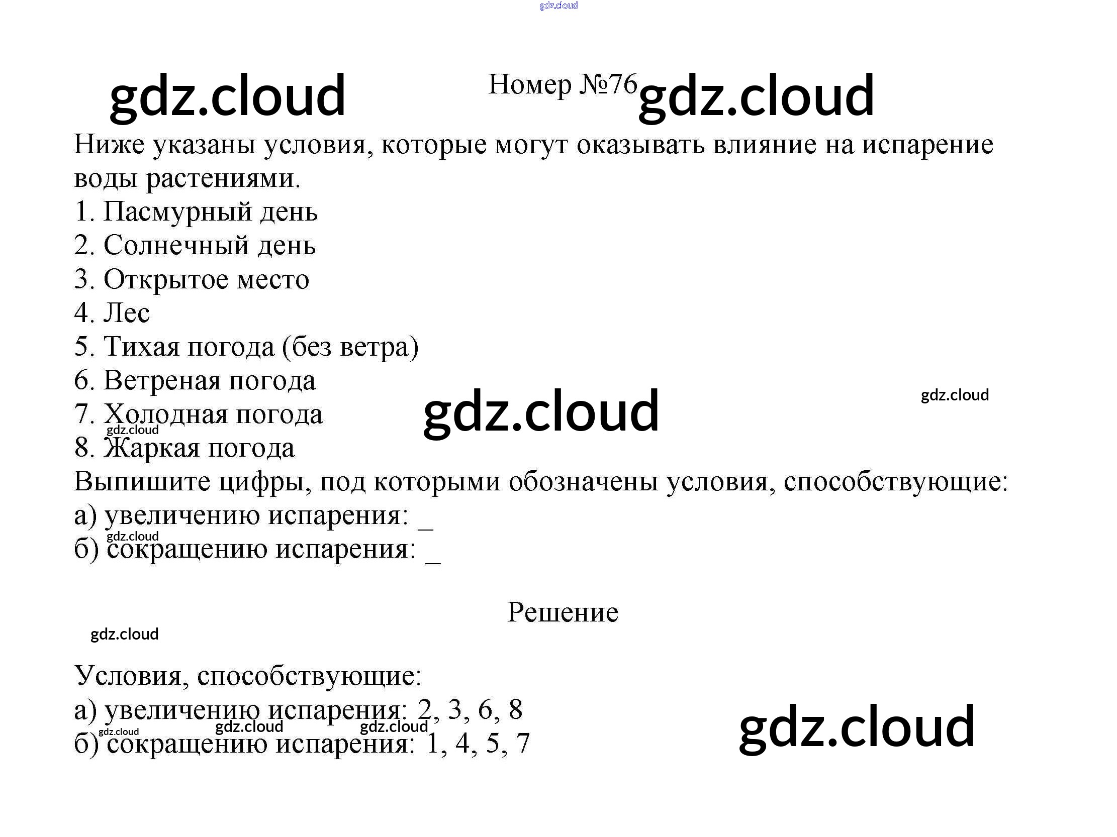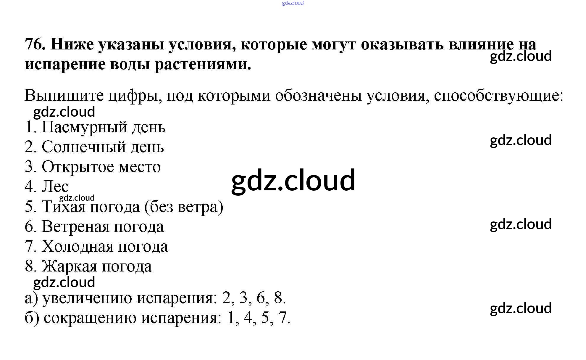 Ответ на задание 76 Рабочая тетрадь Биология за 6 (шестой) класс Пасечник УМК 2017