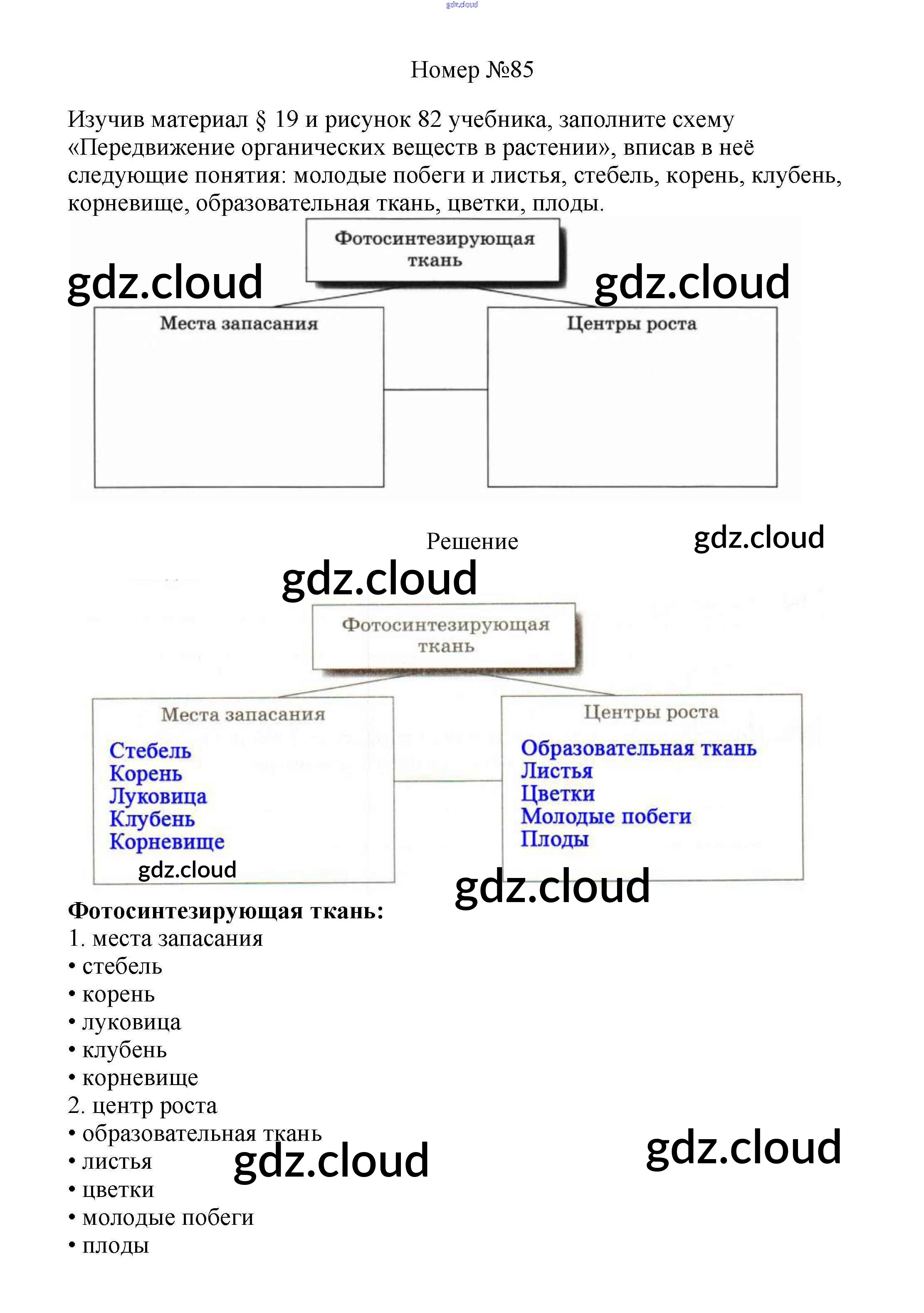 Ответ на задание 85 Рабочая тетрадь Биология за 6 (шестой) класс Пасечник УМК 2017