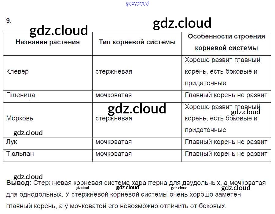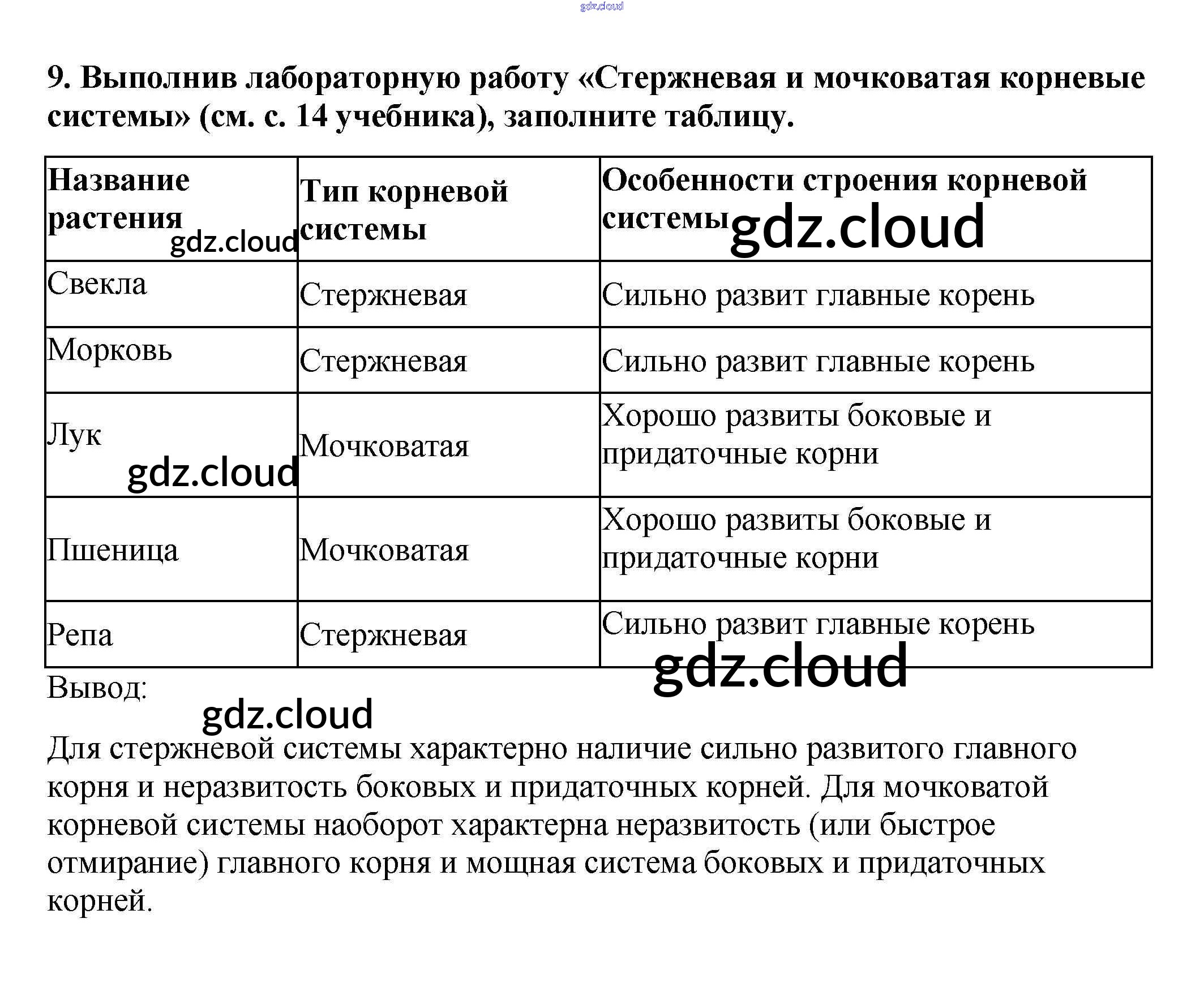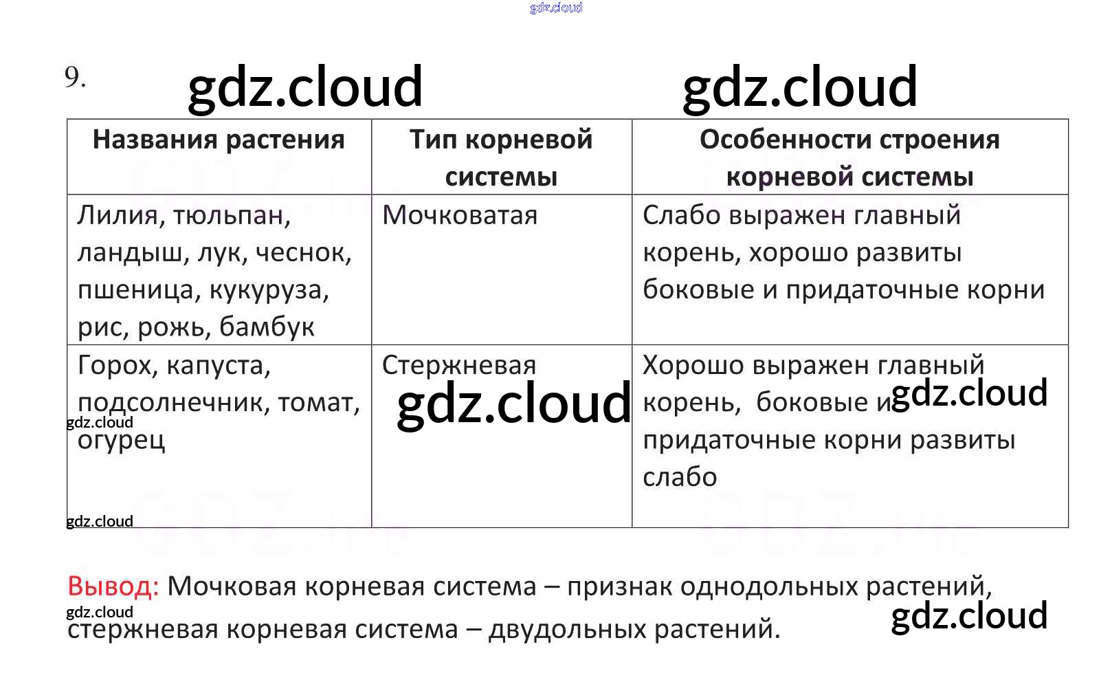 Ответ на задание 9 Рабочая тетрадь Биология за 6 (шестой) класс Пасечник УМК 2017