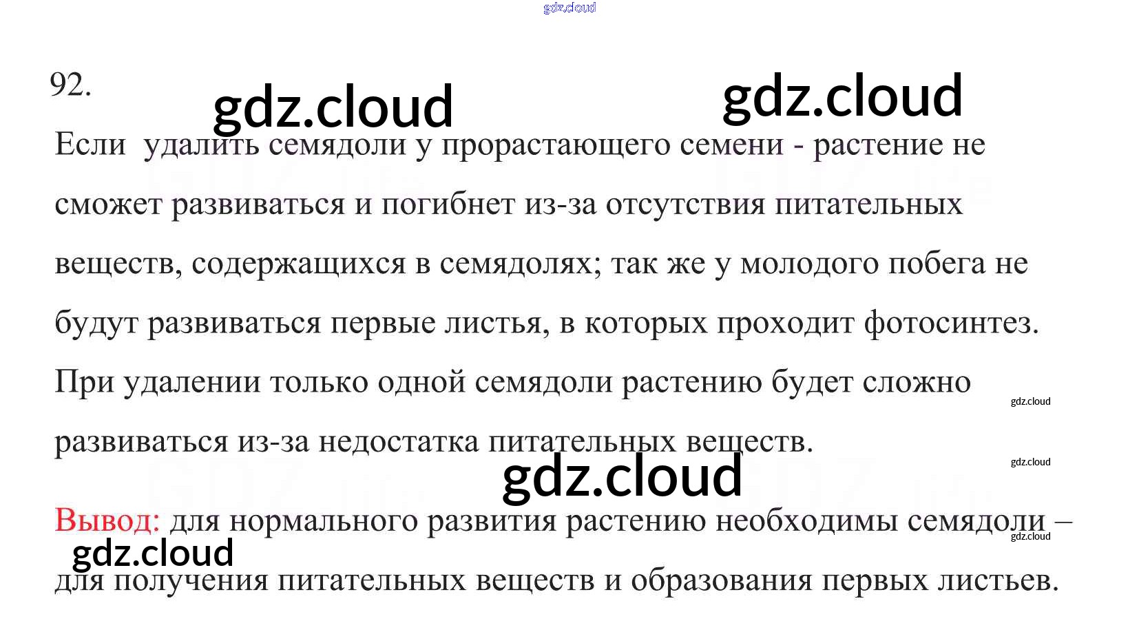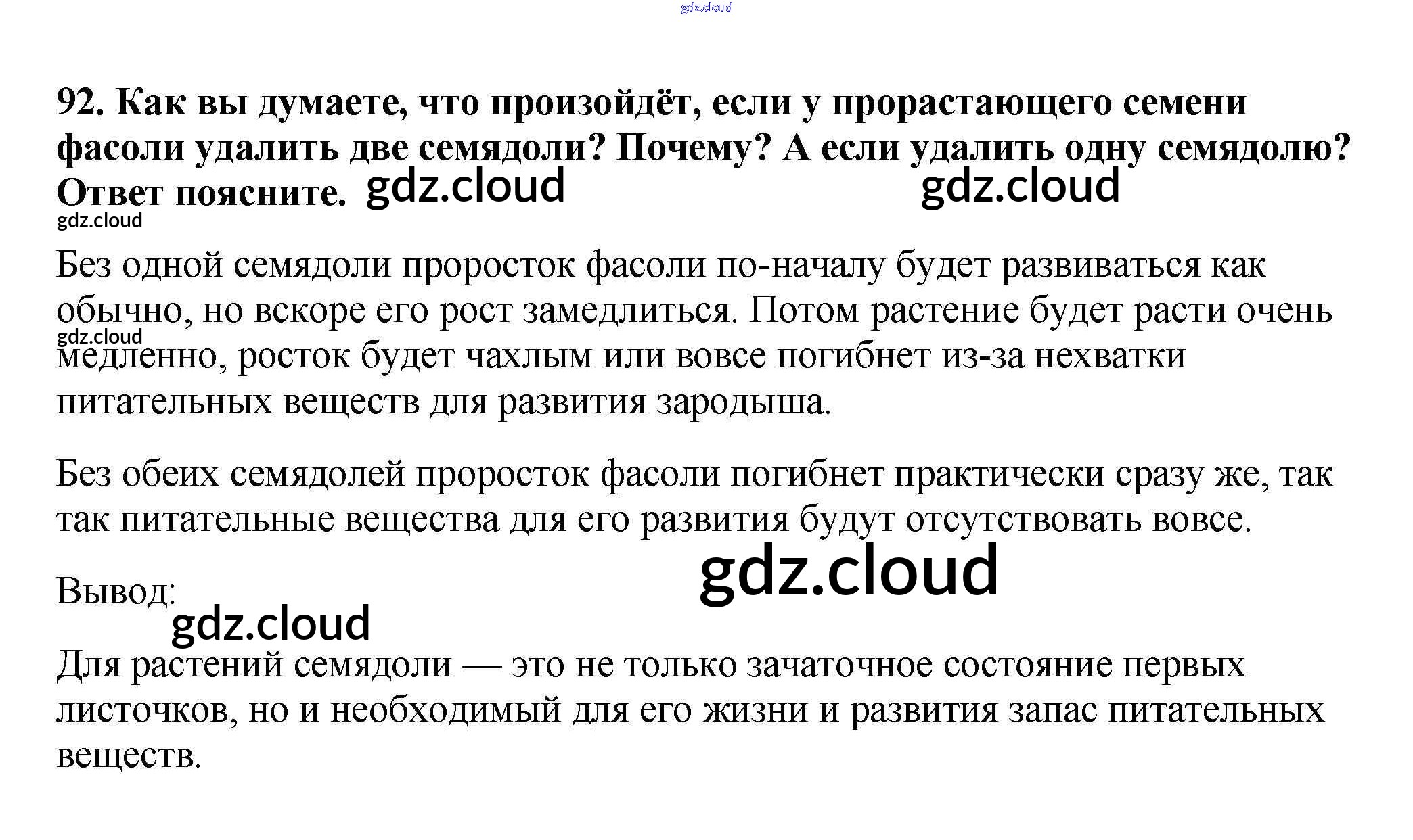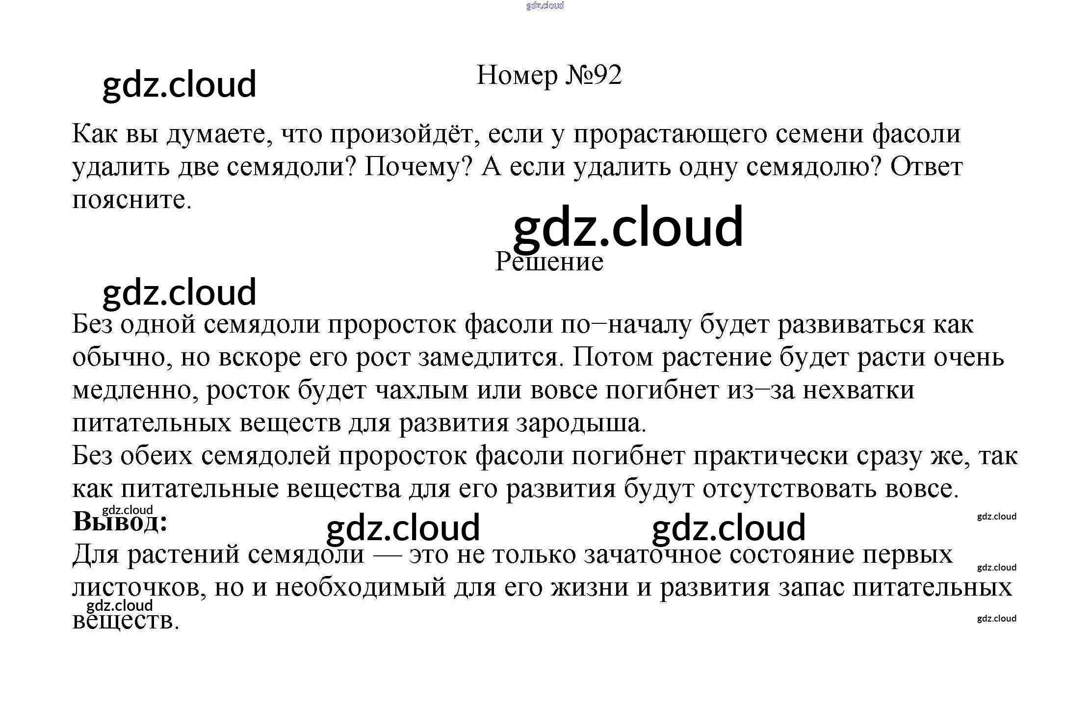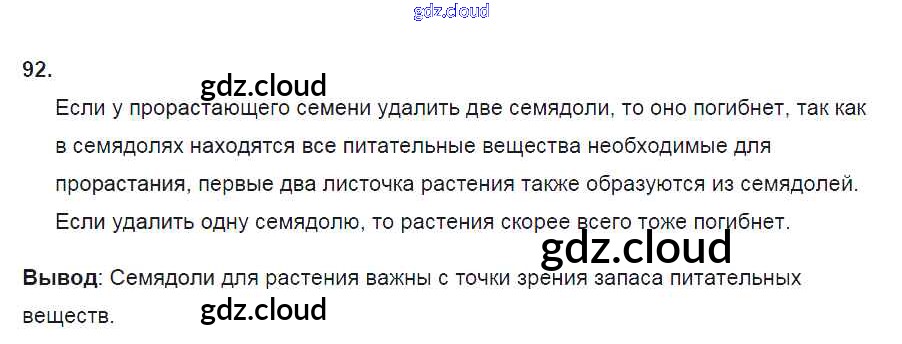 Ответ на задание 92 Рабочая тетрадь Биология за 6 (шестой) класс Пасечник УМК 2017