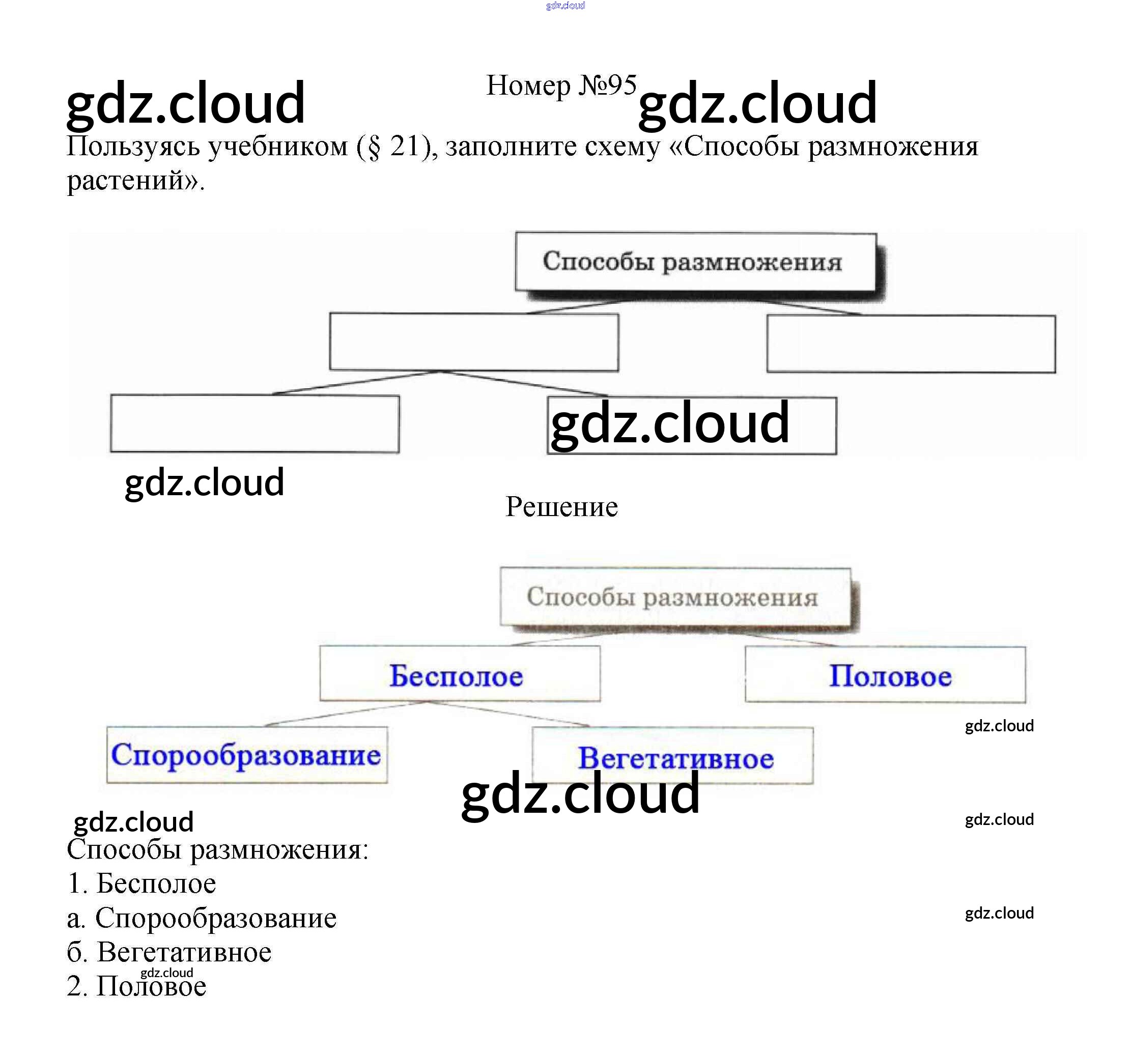 Ответ на задание 95 Рабочая тетрадь Биология за 6 (шестой) класс Пасечник УМК 2017