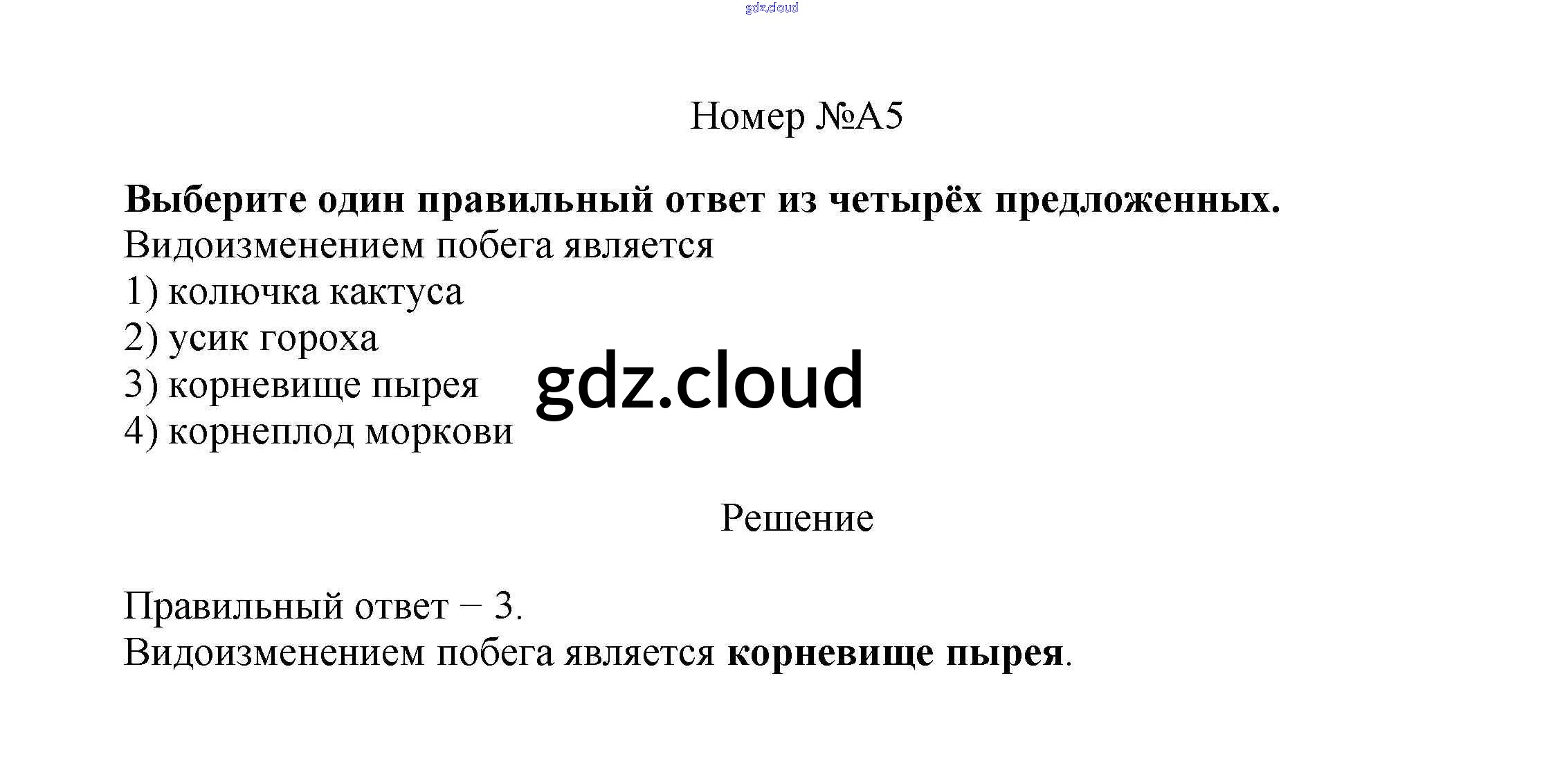 тренировочные задания / строение и многообразие покрытосеменных растений / задания части A / 5