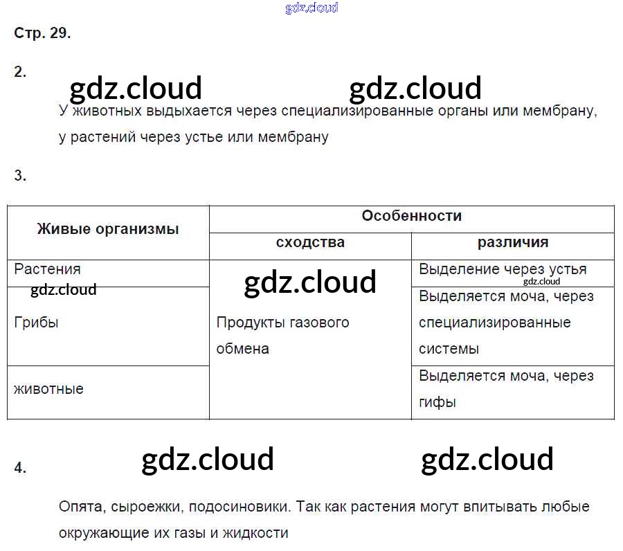 Ответ на задание 29 Рабочая тетрадь Биология за 6 (шестой) класс Пасечник, Суматохин, Калинова, Швецов, Гапонюк Линия жизни 2018