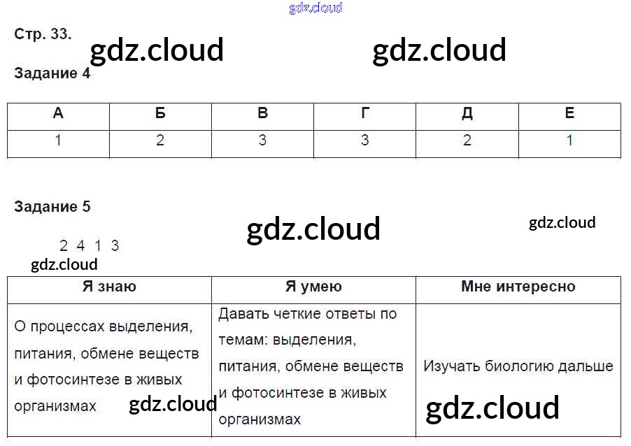 Ответ на задание 33 Рабочая тетрадь Биология за 6 (шестой) класс Пасечник, Суматохин, Калинова, Швецов, Гапонюк Линия жизни 2018