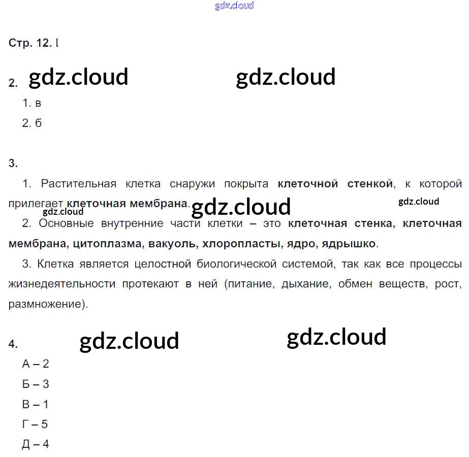 Ответ на задание 12 Рабочая тетрадь Биология за 6 (шестой) класс Пономарева, Корнилова, Кучменко Алгоритм успеха 2020 Часть 1, 2