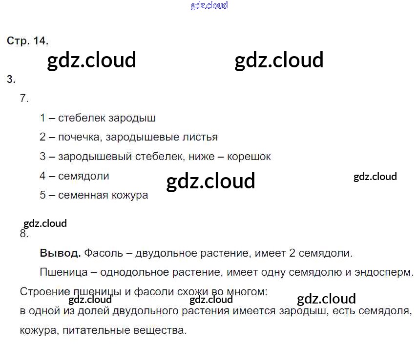 Ответ на задание 14 Рабочая тетрадь Биология за 6 (шестой) класс Пономарева, Корнилова, Кучменко Алгоритм успеха 2020 Часть 1, 2