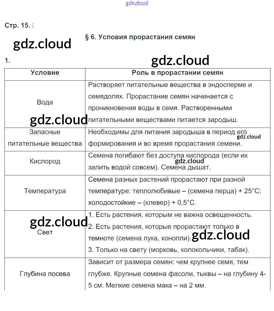 Ответ на задание 15 Рабочая тетрадь Биология за 6 (шестой) класс Пономарева, Корнилова, Кучменко Алгоритм успеха 2020 Часть 1, 2