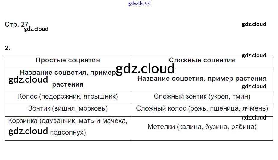 Ответ на задание 27 Рабочая тетрадь Биология за 6 (шестой) класс Пономарева, Корнилова, Кучменко Алгоритм успеха 2020 Часть 1, 2