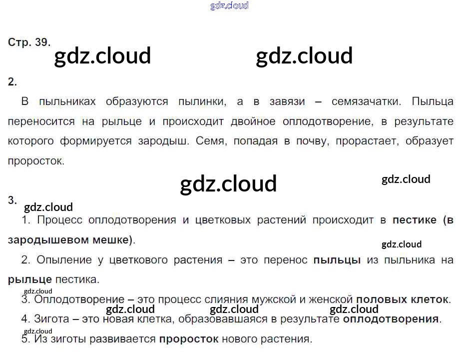 Ответ на задание 39 Рабочая тетрадь Биология за 6 (шестой) класс Пономарева, Корнилова, Кучменко Алгоритм успеха 2020 Часть 1, 2