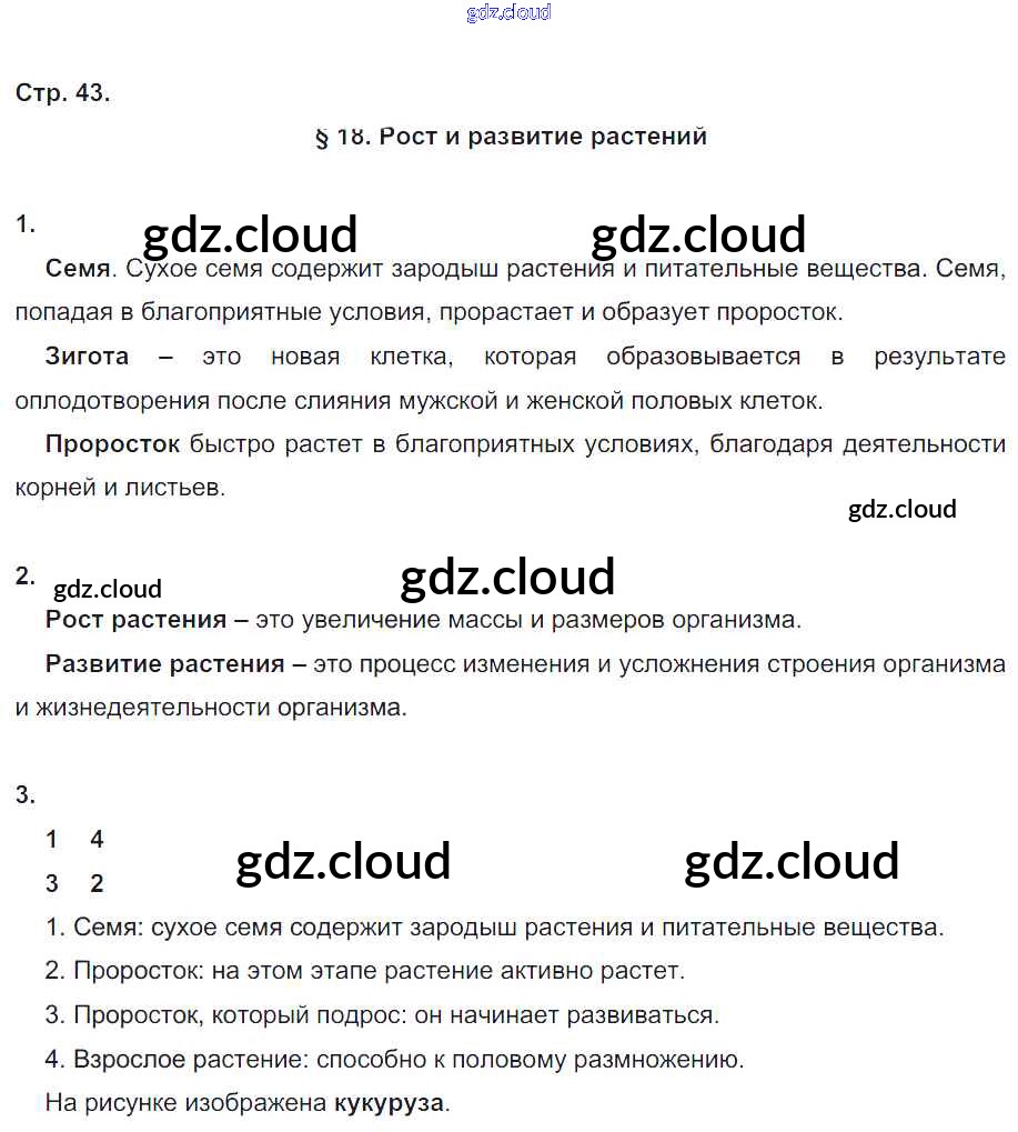 Ответ на задание 43 Рабочая тетрадь Биология за 6 (шестой) класс Пономарева, Корнилова, Кучменко Алгоритм успеха 2020 Часть 1, 2