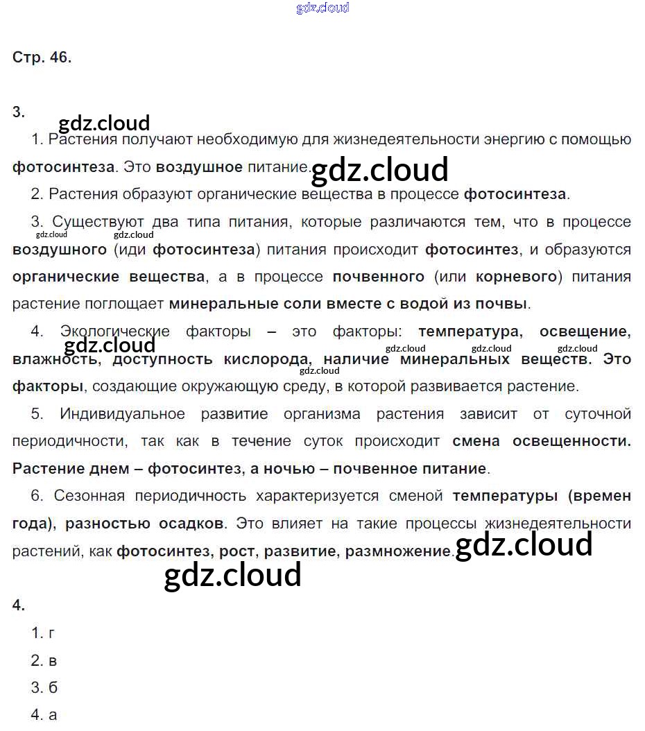 Ответ на задание 46 Рабочая тетрадь Биология за 6 (шестой) класс Пономарева, Корнилова, Кучменко Алгоритм успеха 2020 Часть 1, 2