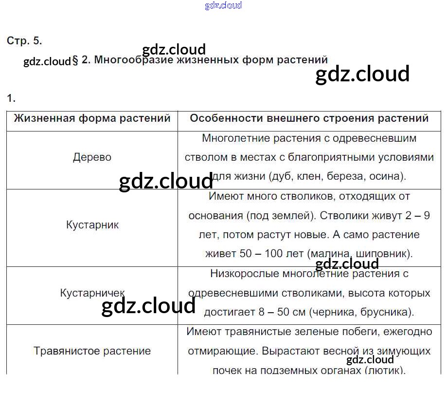 Ответ на задание 5 Рабочая тетрадь Биология за 6 (шестой) класс Пономарева, Корнилова, Кучменко Алгоритм успеха 2020 Часть 1, 2