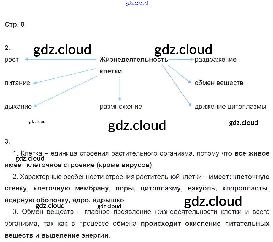 Ответ на задание 8 Рабочая тетрадь Биология за 6 (шестой) класс Пономарева, Корнилова, Кучменко Алгоритм успеха 2020 Часть 1, 2