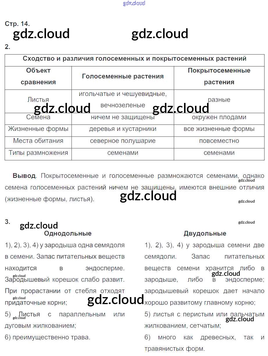 Ответ на задание 14 Рабочая тетрадь Биология за 6 (шестой) класс Пономарева, Корнилова, Кучменко Алгоритм успеха 2020 Часть 1, 2