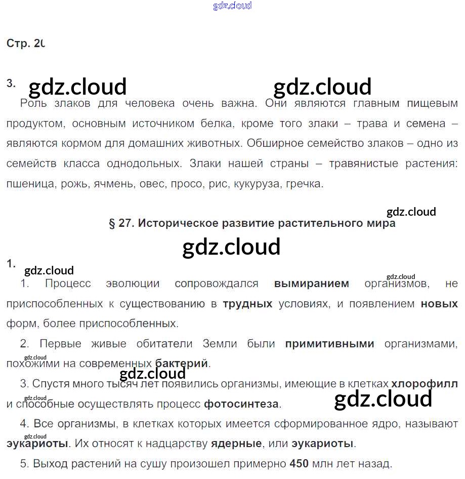 Ответ на задание 20 Рабочая тетрадь Биология за 6 (шестой) класс Пономарева, Корнилова, Кучменко Алгоритм успеха 2020 Часть 1, 2