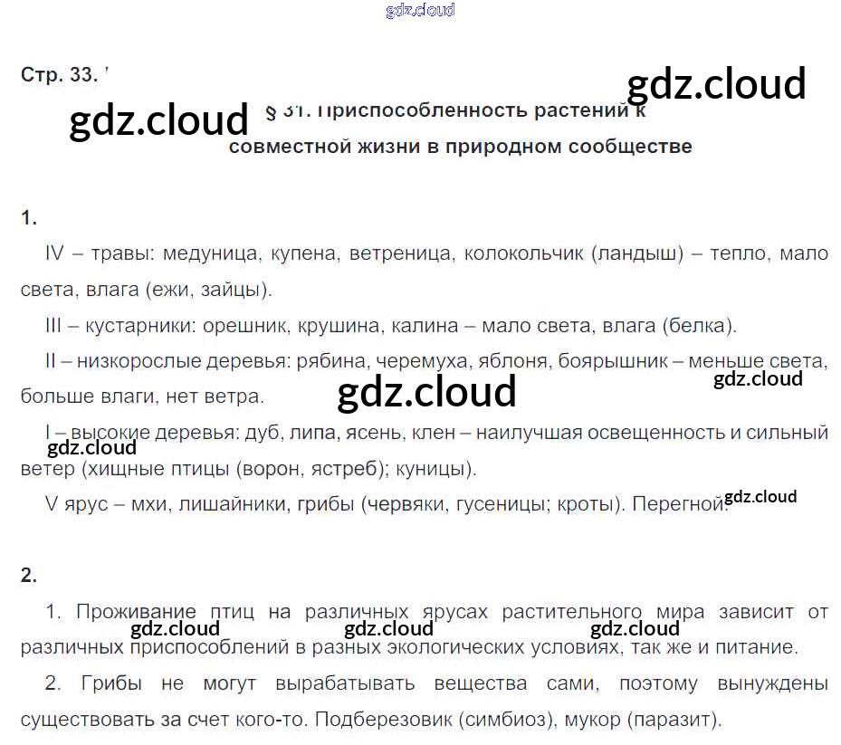 Ответ на задание 33 Рабочая тетрадь Биология за 6 (шестой) класс Пономарева, Корнилова, Кучменко Алгоритм успеха 2020 Часть 1, 2