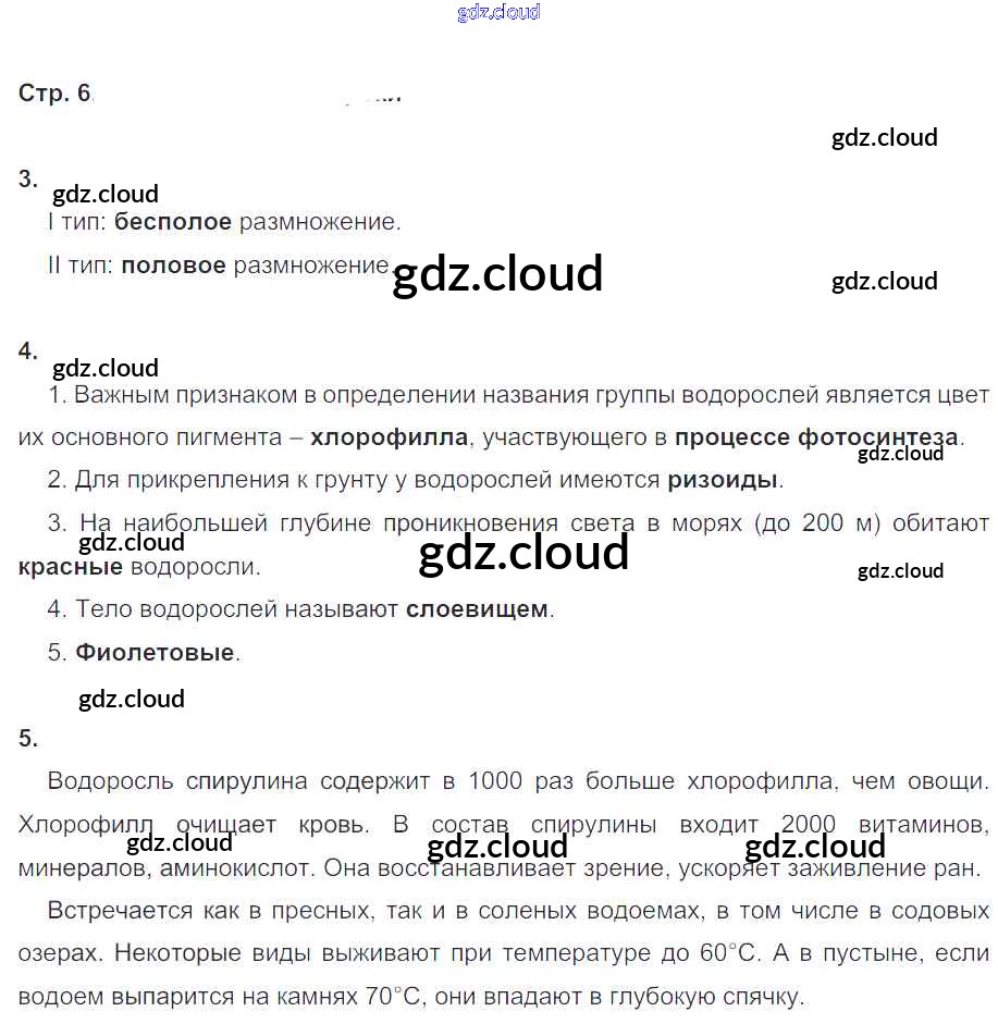Ответ на задание 6 Рабочая тетрадь Биология за 6 (шестой) класс Пономарева, Корнилова, Кучменко Алгоритм успеха 2020 Часть 1, 2