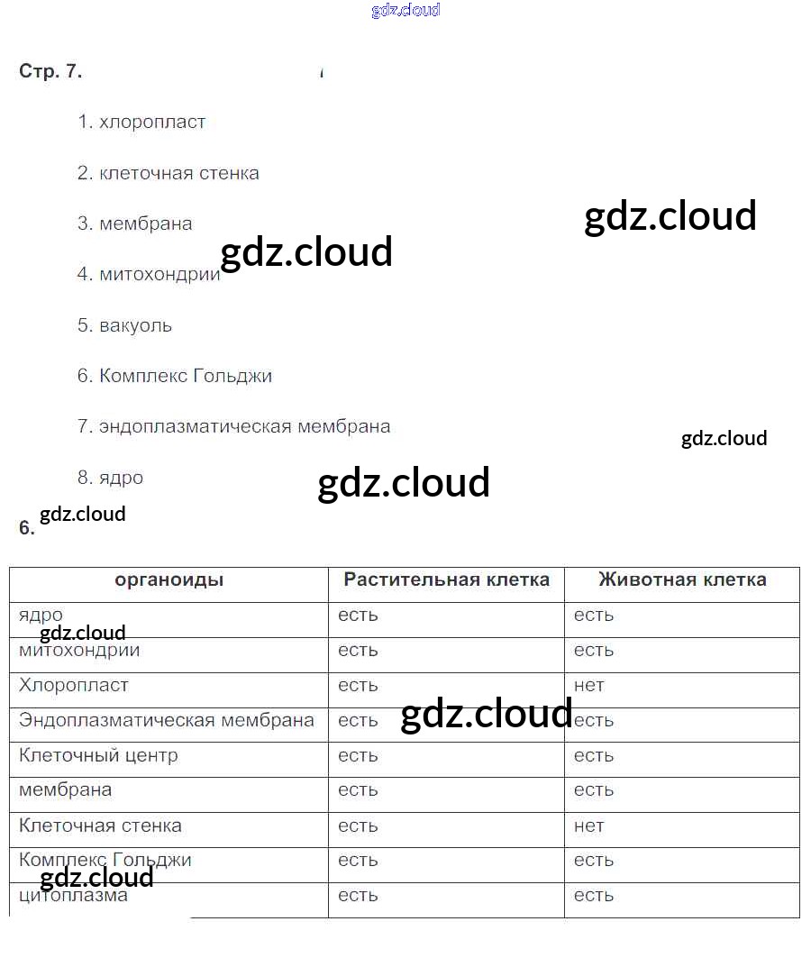 Ответ на задание 7 Рабочая тетрадь Биология за 6 (шестой) класс Сонин Живой организм 2020 ФГОС онлайн и без номера телефона.