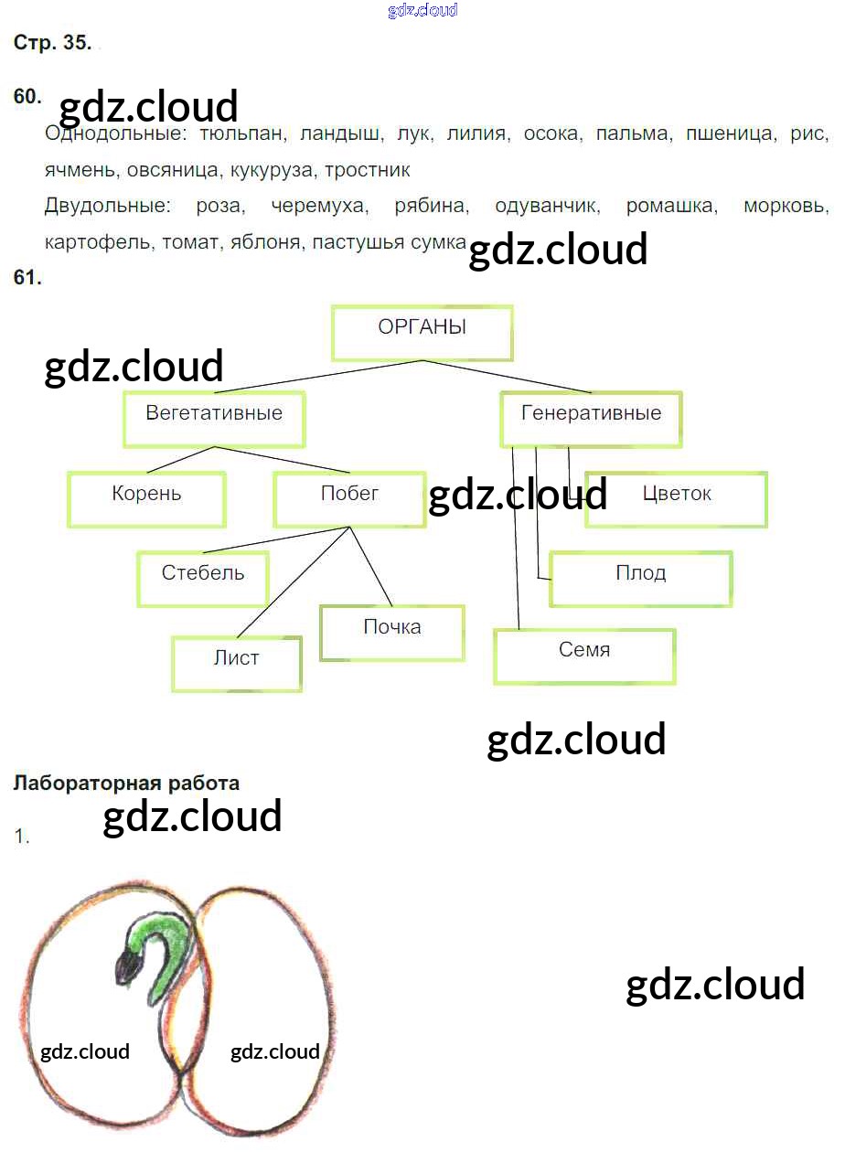 Ответ на задание 35 Рабочая тетрадь Биология за 6 (шестой) класс Сонин Живой организм 2017 ФГОС онлайн и без номера телефона.