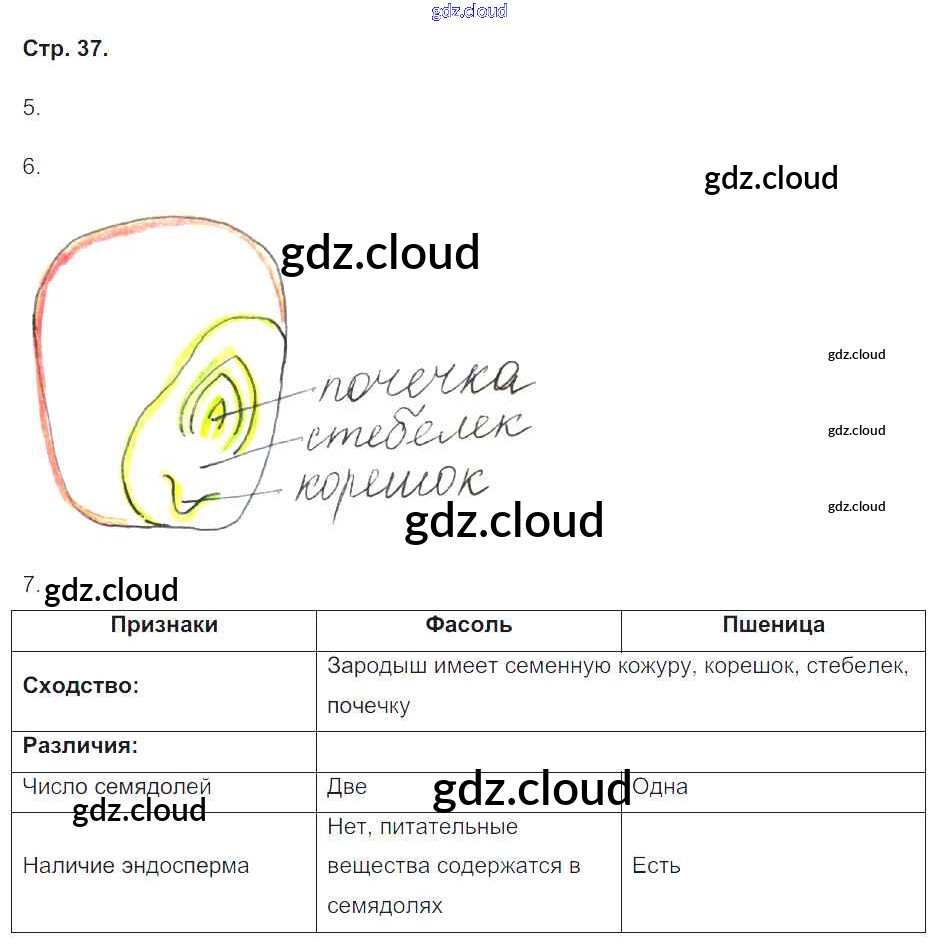 Ответ на задание 37 Рабочая тетрадь Биология за 6 (шестой) класс Сонин Живой организм 2017 ФГОС онлайн и без номера телефона.