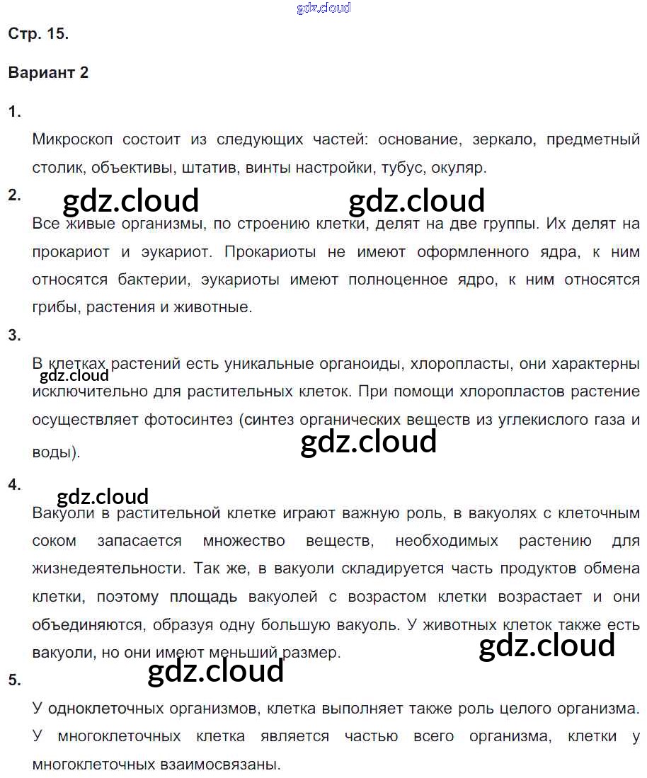 Ответ на задание 15 Тетрадь-экзаменатор Биология за 5, 6 (пятый, шестой) класс Сухорукова, Кучменко Сферы 2017 ФГОС онлайн и без номера телефона.