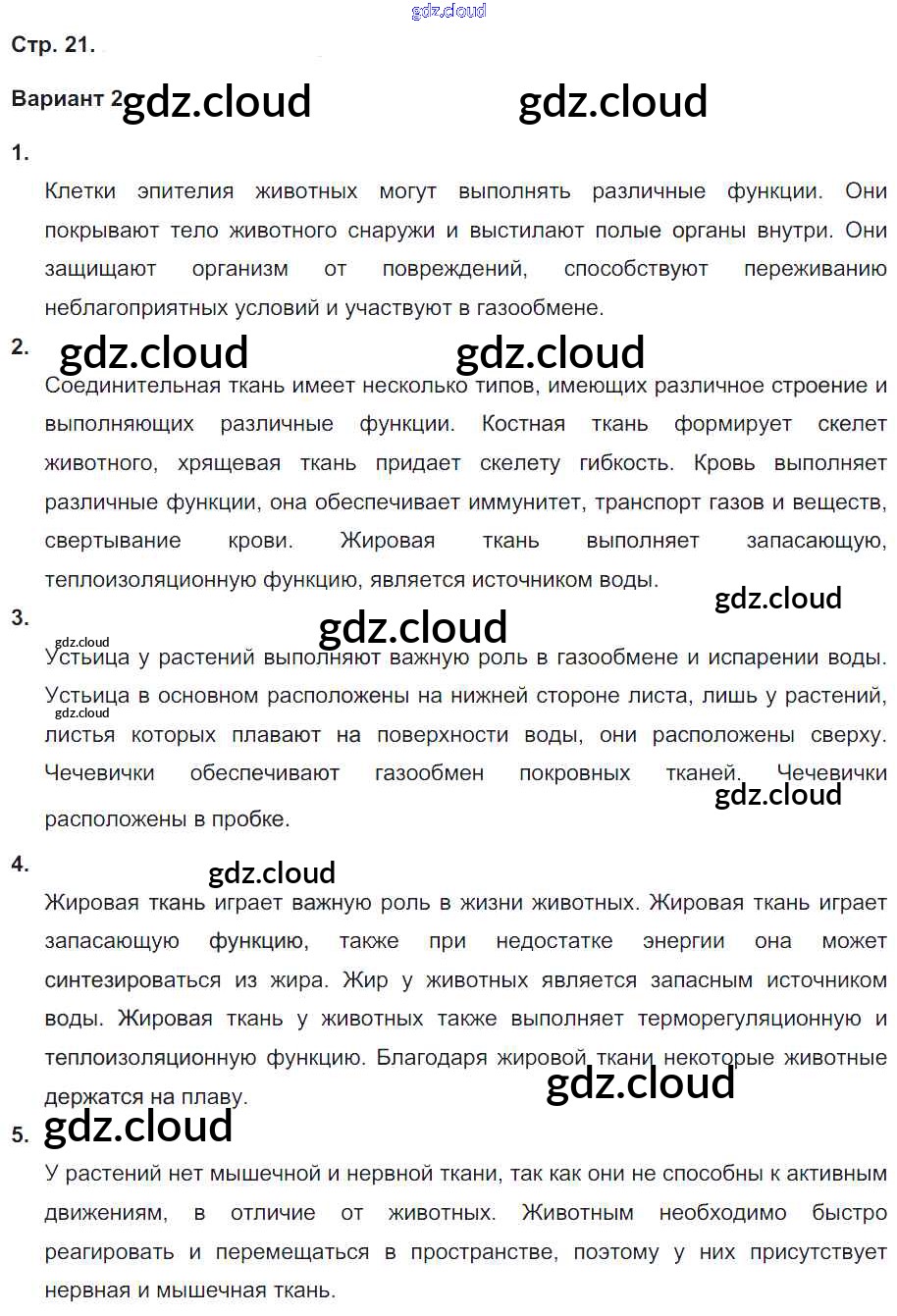Ответ на задание 21 Тетрадь-экзаменатор Биология за 5, 6 (пятый, шестой) класс Сухорукова, Кучменко Сферы 2017 ФГОС онлайн и без номера телефона.