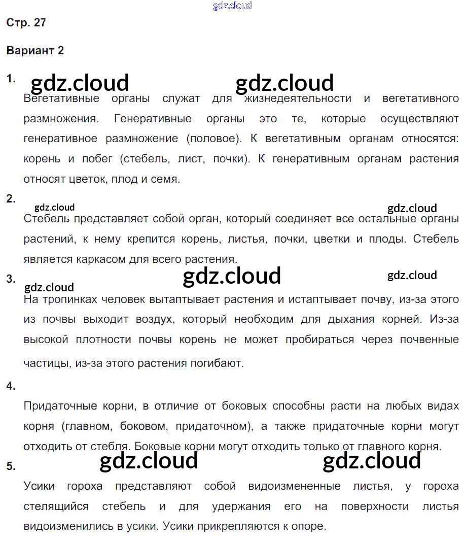 Ответ на задание 27 Тетрадь-экзаменатор Биология за 5, 6 (пятый, шестой) класс Сухорукова, Кучменко Сферы 2017 ФГОС онлайн и без номера телефона.