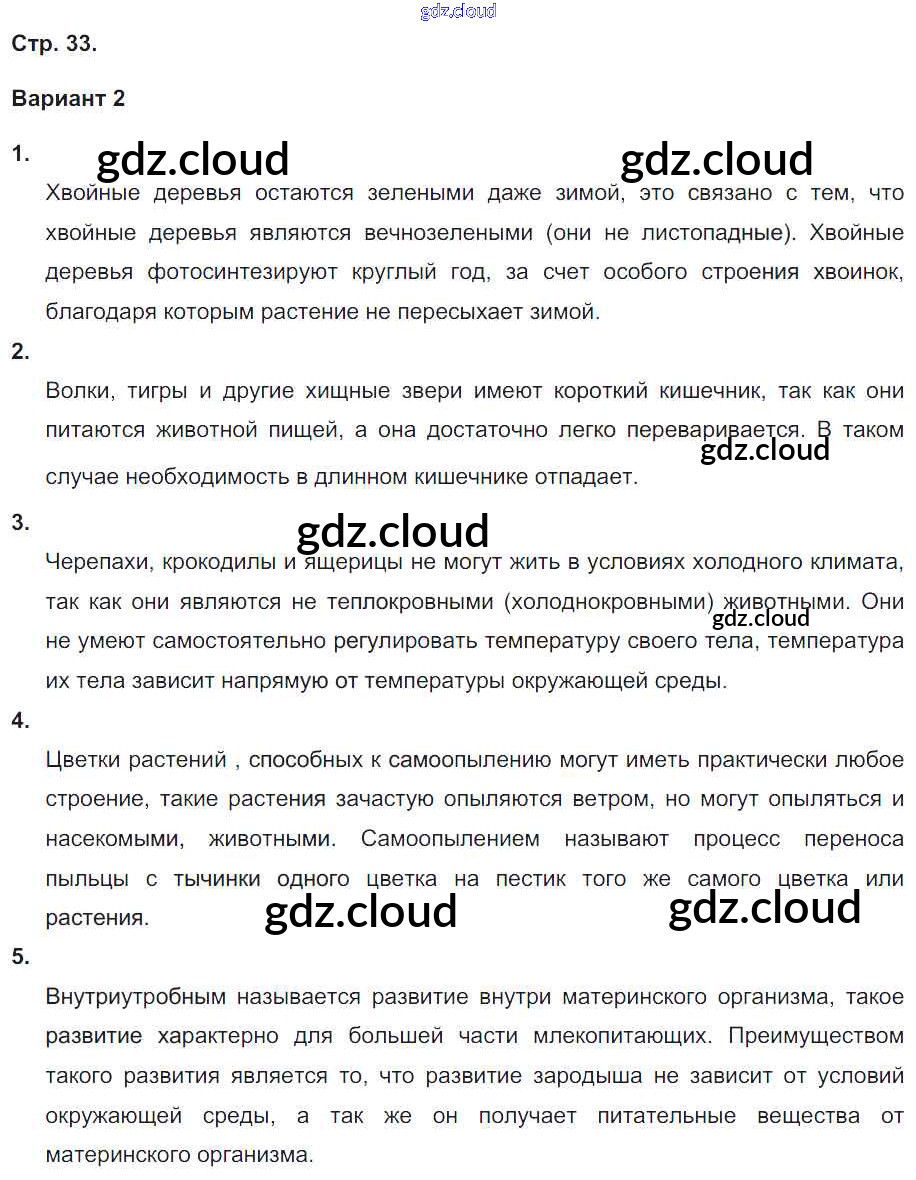 Ответ на задание 33 Тетрадь-экзаменатор Биология за 5, 6 (пятый, шестой) класс Сухорукова, Кучменко Сферы 2017 ФГОС онлайн и без номера телефона.