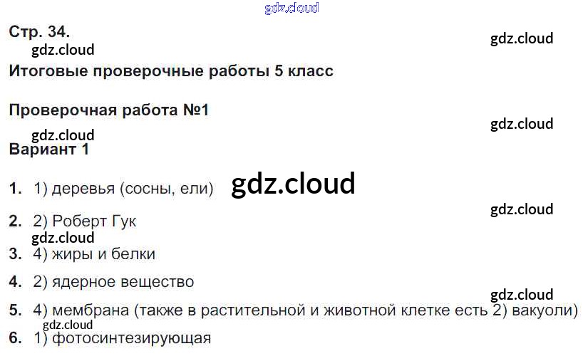 Ответ на задание 34 Тетрадь-экзаменатор Биология за 5, 6 (пятый, шестой) класс Сухорукова, Кучменко Сферы 2017 ФГОС онлайн и без номера телефона.