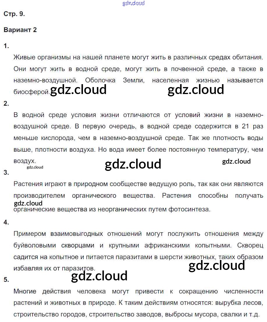 Ответ на задание 9 Тетрадь-экзаменатор Биология за 5, 6 (пятый, шестой) класс Сухорукова, Кучменко Сферы 2017 ФГОС онлайн и без номера телефона.